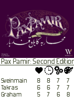 Pax Pamir var meget interessant og kløktig designet spill. Allianser skifter, agendaer endrer seg og situasjonen på brettet er statid i fluks, og det vil alltid være å gå etter den med mest poeng! Så midlertidige allianser mellom spillerne oppstår også underveis.
