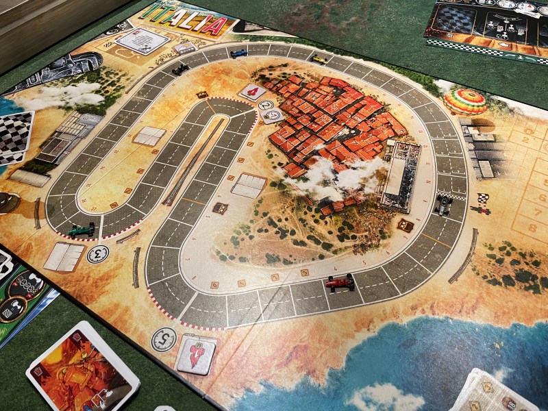 Vi spiltet på kartet Italia, som så tilsynelatende enkel ut med kun tre svinger å forholde seg til. Vi endte opp med en regel at den langs strekningen som er omtrent 2/3 av kartet, ikke tillot å bruke dragsuget. Dragsuget er veldig viktig, det lar deg flytte bilen to skritt frem, uten å generere ekstra fart. Så du kan smyge deg gennom en sving.