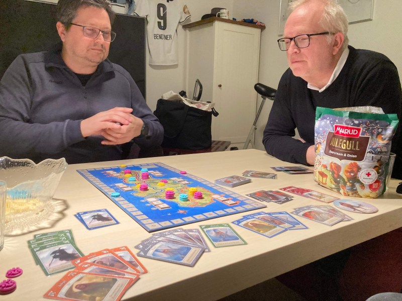 Sveinmain hadde invitert til spilling i sin kjeller denne gangen da Grotten var vinterstengt pga strøm og kulde. Peter og Kjell Henrik tok turen og sistnevnte fikk beskjed om å ta med spill, og spill hadde han, nyheter for oss andre denne gangen og et nytt 2022 spill.