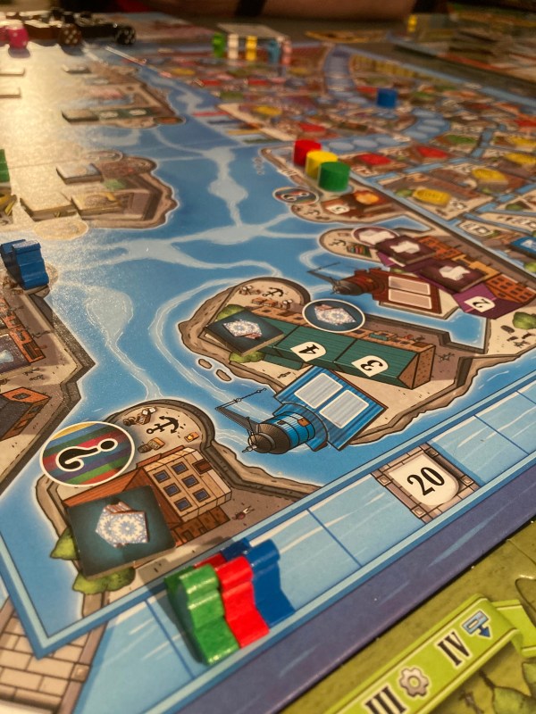 Vi andre tok turen til Amsterdam. Her skulle vi hente ut varer fra det kjekke roundellhjulet, seile rundt i byen på en lekter, lesse varene fra varelageret til båten, lesse disse av i riktig havn, og på toppen hente og bringe passasjerer rundt i byen. Sveinmain, Vegard, Andre og Saulius entret oppgaven på helt forskjellige måter. I tillegg måtte en hver runde velge et oppdragskort som måtte fullføres før spillet var over – 12 stk i alt, hvis ikke vanket det minuspoeng. Sveinmain stakk og leverte en vare i 1. runde og tok en kjapp ledelse. Men så stoppet planen. Så fikk de andre maskinen i gang. Vegard føyk ifra, så Saulius, mens Takras hadde skjønt at en skulle henter varer i byen ved siden av hverandre for da fikk en sammenhengende seierspoeng ved spillets slutt. Og den taktikken virket.