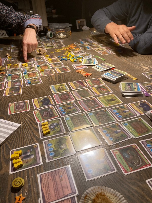Hovedrett A: Så noe Afro aldri hadde opplevd i PG – vi måtte dele inn i lag. 5 som skulle slutte ca kl. 22, og de 4 andre. Graham hadde med Fields of Green – et spill uten brett, men med flotte kort og brikker. Du skal bygge ut gården din, høste, vanne, mate dyr og betale leie for å få gode gjenstander som igjen gjør det lettere å drive gården alle 4 årene spillet varer. Graham hadde lovt at det skulle være ferdig til 22, og Astrid, Peter, Kjell Henrik og Afro trodde på han. I motsetning til Peter forrige mandag, så klarte Graham og holde ord. Kl. 22 presist, så rundet spillet av og en vinner skulle kåres. Som en lei tendens i enkelte spill, så har regelforklareren en fordel, så også her. Ingen kunne ta fra Graham seieren denne mandagen, og de som skulle gå hjem kunne forlate området umiddelbart. Mens noen ble igjen for desserten…