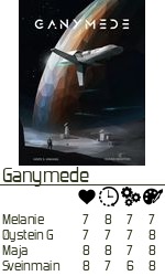 Ganymede som spillet heter falt godt i smak med 7 og 8 på terningen. Kjapt – ca 40 minutter, og nok å tenke på.