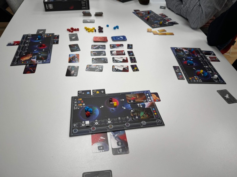 Så var det å dele seg på 2 bord. Øystein har en crush til å spille det spillet han spilte forrige gang. Ganimedes havnet på det ene bordet, og han fikk med seg Afro, Peter og Takras. Sveinmain tok en regelforklaring og så var gutta i gang. Var nok litt forvirring underveis, men Peter sendte avgårde romskipene sine til outer space i rekordfart, mens resten satt måpende og kikket på. Dermed ble det en overbevisende seier til Peter. Forsamlingen var ikke helt overbevist om kvaliteten på dette spillet, men kanskje det blir bedre neste gang?!?