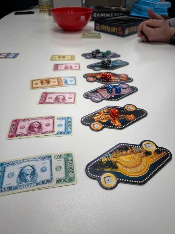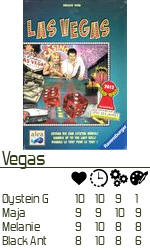 På det andre bordet, avsluttet de kvelden med Las Vegas, det legendariske terningespillet, som er OOP. Men vi har heldigvis et eksemplar og det gav god steming blant spillerne. Aner ikke hvem som vant det denne gangen men det var veldig populært.