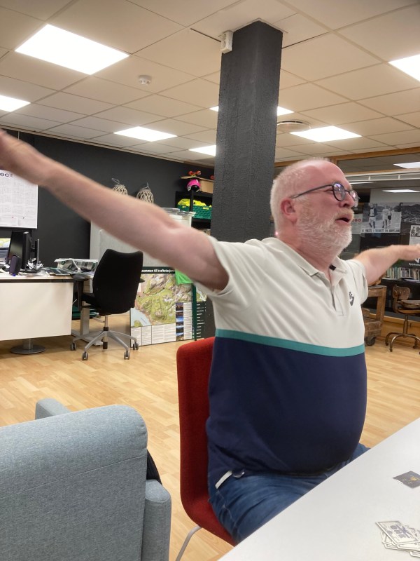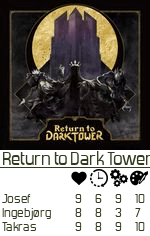 Vi kom oss inn i Frivilligsentralen på Jørpeland og Takras rigget opp Return to Dark Tower, en skikkelig kloss av et spill, med et kjempekult tårn i midten på spillet som en putter hodeskaller inn i og løser ulike ruests med. Lukene i tårnet forandrer utseende og hodeskaller ruller ut. Takras forklarte reglene og Josef og Ingebjørg ble med i dette samarbeidsspillet. Takras fant frem Ipaden og koordinerte den opp mot tårnet. Monstre skal nedkjempes og Ingebjørg måtte kjempe tappert på sin side av brettet, og når du tror du har nedkjempet alle skal du avslutte det hele med å ta en skikkelig seiglivet boss.