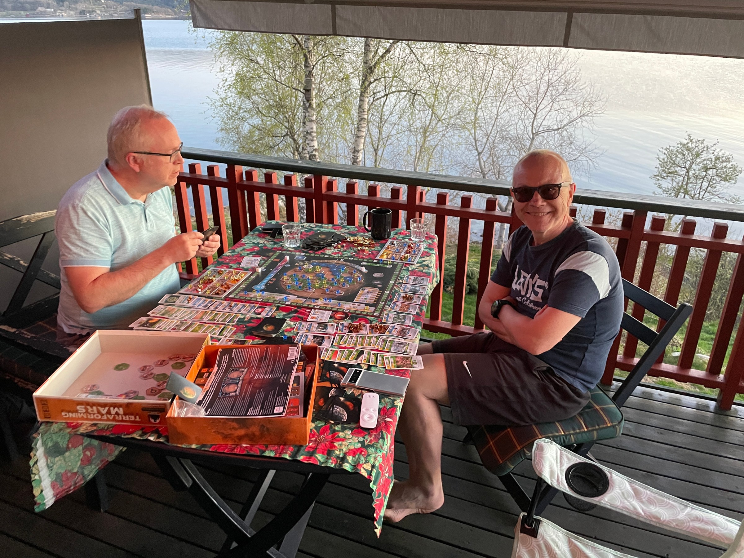 Knut foreslo å starte tidlig denne nydelige fredagen og åpner balkongen sin for spilling. Med litt kort forvarsel var det kun Peter som hadde sjans å komme tidlig, med Takras og Sveinmain på vei til kvelden. Terraforming Mars var forretten kl 17:30, før resten… Continue Reading «Terraforming Mars – det tar årevis»