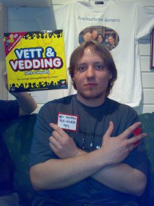 Spill-loftet var åpnet igjen etter påske, og 8 spillesugne var kommet for å få sin ukentlige dose med brettspill. Som vanlig sto en 3 retters meny på programmet, og som forrett var de fleste klare for en runde Vett og Vedding. Ebi som kom alene denne gangen, og som ikke var så god på melodi grand prix, Lance Armstrong og andre gode spørsmål spilte på lag med Black ant. Lance var først ut, og gav alle en enorm opptur da alle hadde rett på første spørsmål. Sven satte også det neste spørsmålet og var kongen på haugen. Men kongen kom seg etterhvert på bakken igjen. Men som sagt, pengene florerte denne gangen, såpass at banken gikk tom og en måtte begynne å skrive ut sjekker. De feteste sjekkene fikk Vegard, som satset der ingen andre turde, og i tillegg fikk rett i sine antagelser. Han gjorde det så godt at han like godt satte NY NORSK REKORD i Vett & Vedding med hele ….