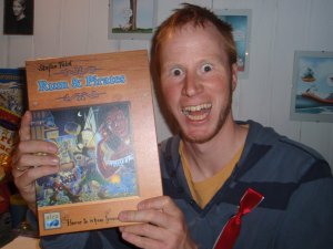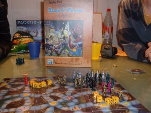ytelse i dette spillet, og Sveinmain ble utropt til å ha mest flaks (les: Dyktighet) med terningen denne gangen, noe som også gav han en solid seier til slutt. I følge han selv gjelder det i tillegg til å være dyktig med terningen, også å få mest ut av mannskapet sitt, og spesielt å ikke sløse de ombord i båten i kampen om køyene når det er mange om beinet. Ebi var god til å drikke, og ble med på de fleste pøbrunder, og sanket gode poeng hele veien, og gav Sveinmain kamp helt til døra. Det kan vel ikke sies om Sven og Hollender som stilte i egen scorpion-klasse.