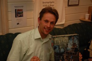Hollender hadde tatt med seg Morgenland eller Alladin’s dragons som det heter på engelsk. Dette er et taktisk auksjonsspill hvor man byr hemmelig på skatter, tjenester og artefacts. Materialet og brettet så inviterende ut og med noe fortrylling i øynene startet spillerne som eventyrere i den arabiske verden. Først måtte vi samle skatter som man betaler artefacts med. Vegard hadde lagt inn samme bud som Hollender to ganger, men sikret artefacts siden han var startspiller. Kampen hadde startet på alvor, for den som samler mest artefacts vinner spillet. Black Ant