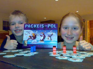 Etterpå tok vi en julegave i bruk. Packeis am pol ble spilt. Her gjelder det å karre til seg mest fisk uten at de andre får tak i den. En kan stenge hverandre inne, og ikke minst stenge seg selv inne på et isflak fullt av fisk, og på den måten få utr