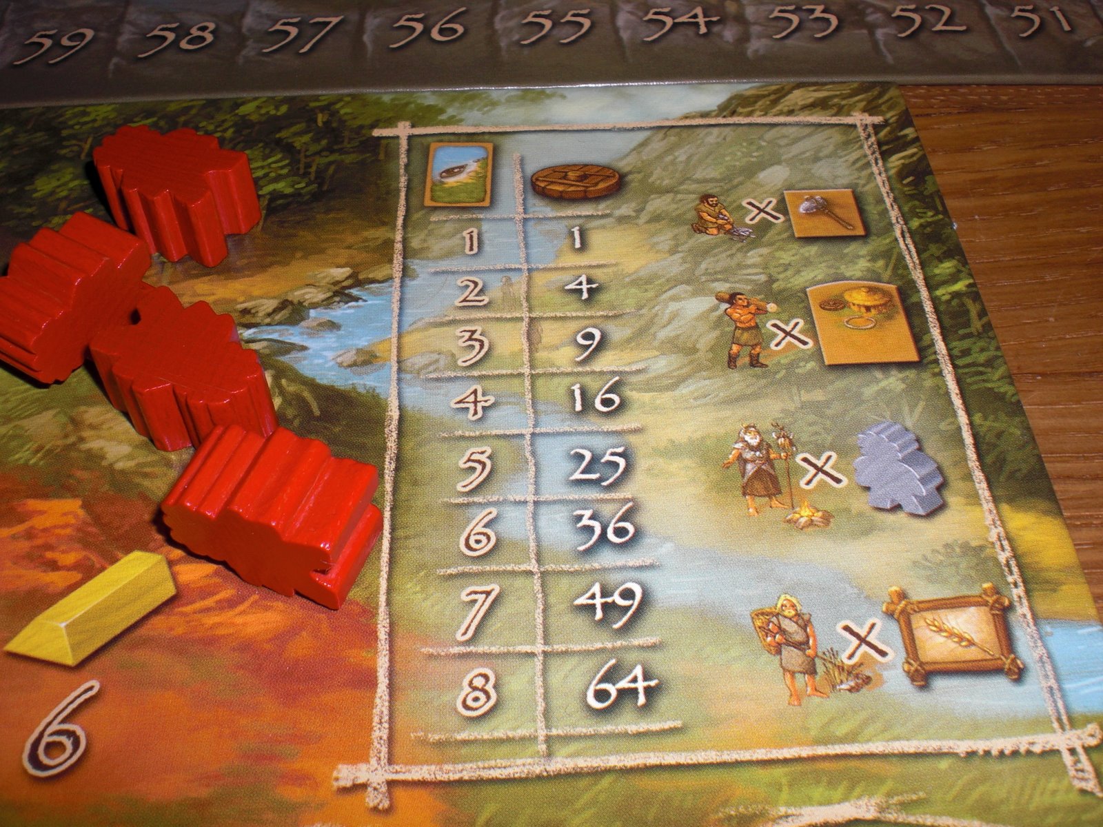 slutttellingen, hvis du har håndtert den rette samlingsstrategien. Det er en kortsort som gir deg kvadratet til det antallet samlede ulike kort. Så kan åtte ulike symbolkort gi deg hele 64 poeng på slutten. Med de andre kortsortene kan du også få mange poeng hvis du har samlet tilsvarende elementer (byginger, korn, redskap og slektninger).