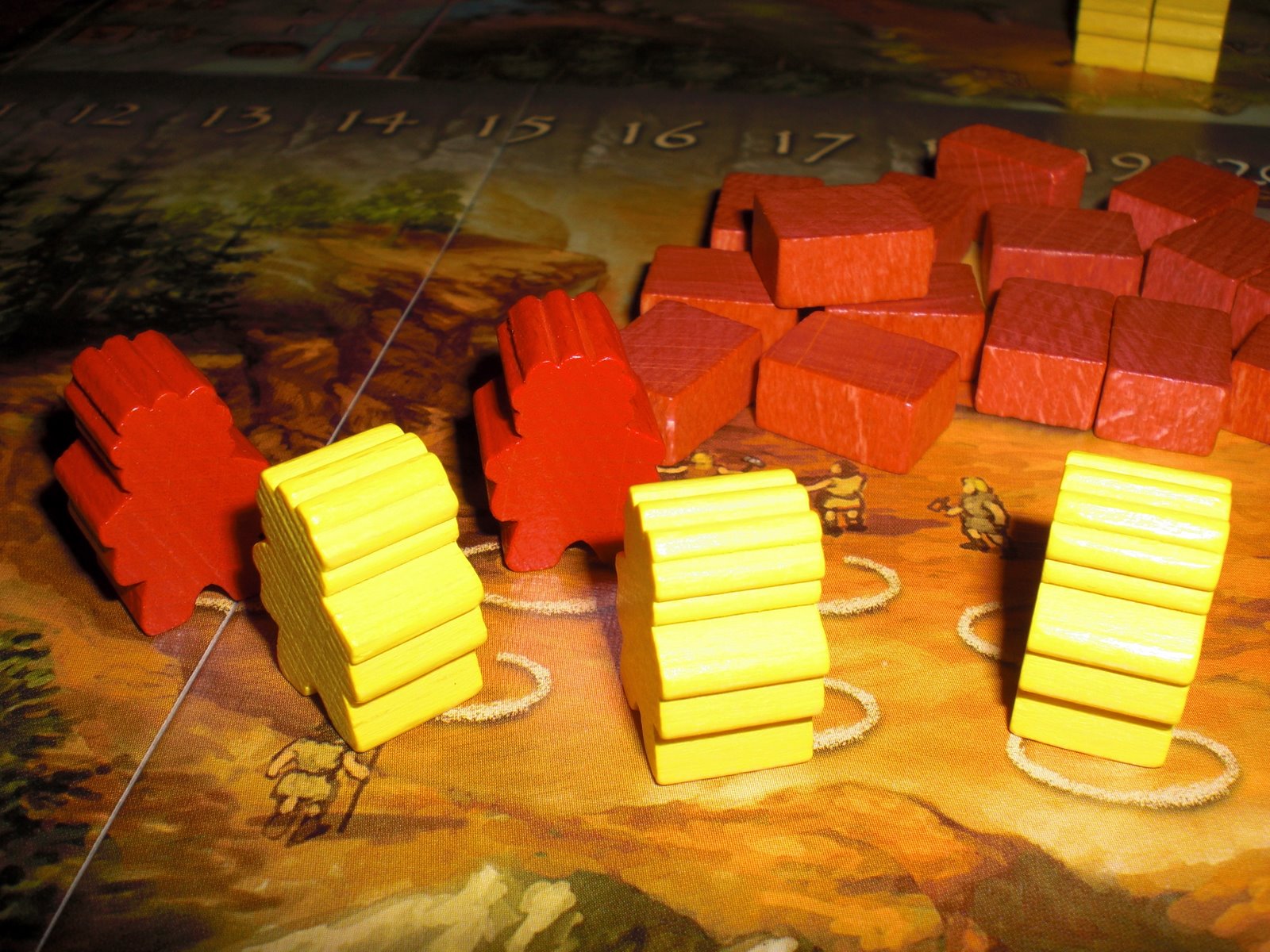 e et svært vennlig spill. Du får stort sett alltid noen råvarer, jeg får noe, og andre får noe. Egentlig får alle noe hver runde, selv om noen får mindre. Artig er også sivilisasjonskortene med terningene på. Spilleren som har fått det kortet kaster like mange terninger som det er spillere rundt bordet. Den velger først og så få alle noe. Harde kamper finner man ikke i dette spillet, selv om det kan være plagsomt nok når andre okkuperer «dine» plasser. Som i Stormenes Tid forsvinner de mest attraktive plassene først. Dessuten må man ikke utføre handlingen, hvis du ikke kan. Derfor er det lettere å sitte i veien for hverandre enn som for eksempel i Agricola.