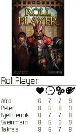 Afro var ikke sikker på å kunne komme, så Takras hadde satt opp Dune Imperium for å ikke få ninja-angrep av en ny Newton. Men med fem spillere måtte det bli noe annet. Roll Player som går fra 1–4 spillere ble valget. Litt rart valg, men en utvidelse tillater for hele fem spillere.