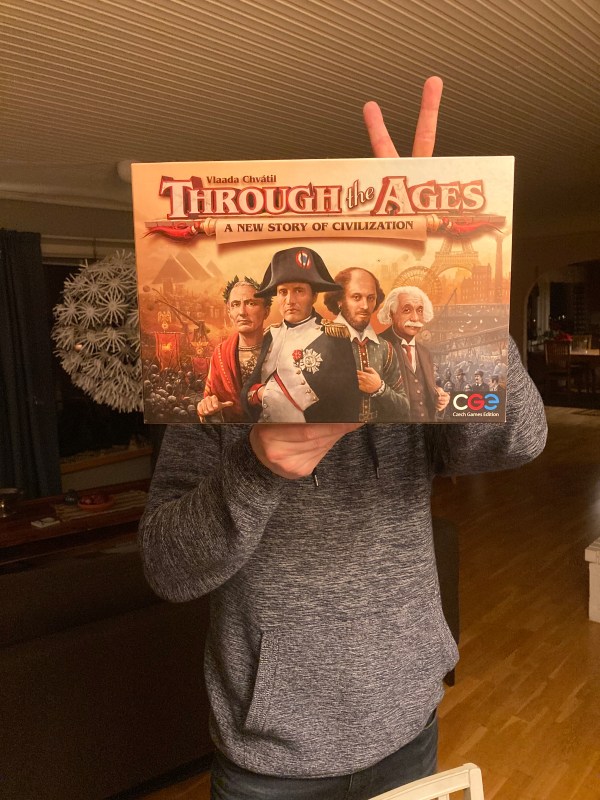 Peter Lidegran hadde invitert til brettspill hjem i stua og forvist resten av familien til kjøkkenet denne fredagskvelden. På stuebordet hadde han satt frem et kvalitetsspill fra sin egen samling han ennå ikke hadde fått spilt igjennom skikkelig, nemlig Through the ages – a new story of civilization. Ville han få spilt igjennom denne kvelden?