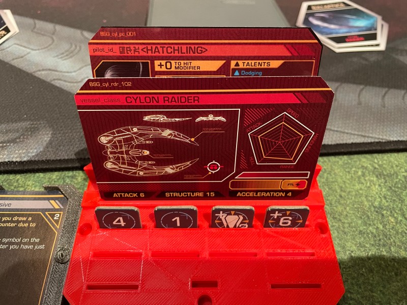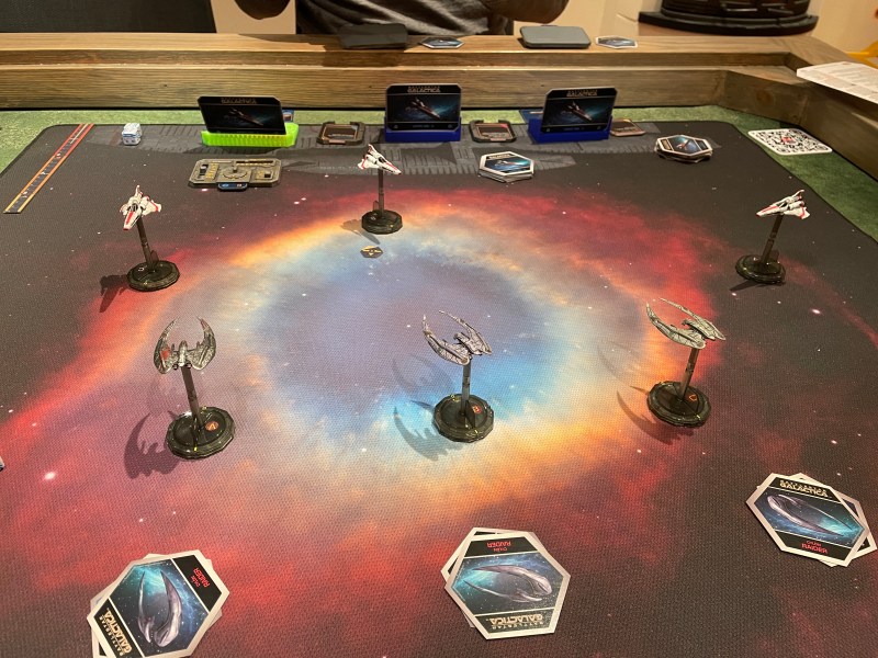 Brettspillet er elsket (eller hatet, spørs hvem i PG du spør, mens boardgamegeek har det meget høyt på listen over gode spill), men i senere tid har det kommet en utgave hvor man flytter på miniatyrer av de mindre romskipene som skyter på hverandre. Battlestar Galactica – Starship Battles, fra Ares Games.