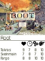 Root er et kjekt spill med relativt enkle regler, tydelige kort med artig grafikk, men med mye variasjon og lureri underveis.