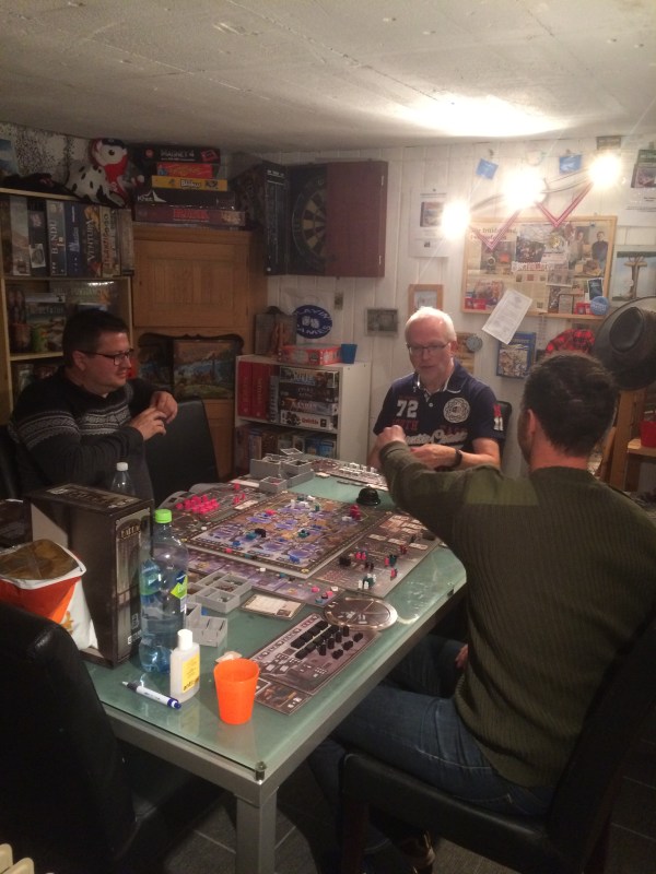 6 spillere – endelig spilling igjen på 2 bord i Grotten. Håper det skjer ofte når høst og brettspillsesongen går en mørk og lun fremtid i møte.