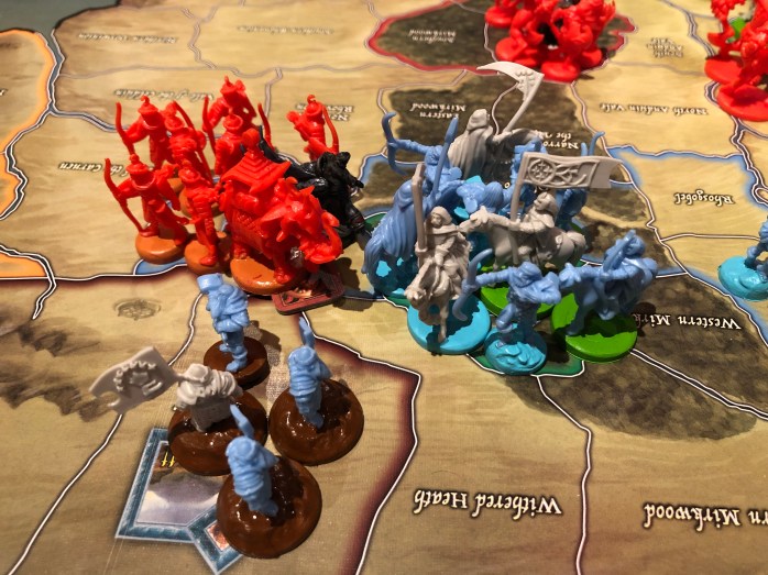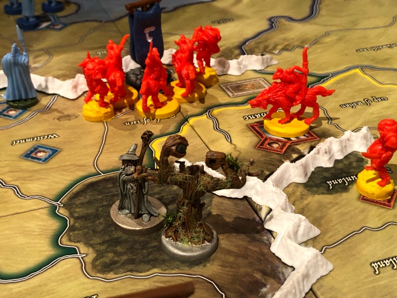 Det er første gang undertegnede har opplevd at Minas Tirith ikke er med i spill i det hele tatt. Aragorn fikk stå fredelig og passe på, og gi det frie folk en ektra terning stort sett hele spillet, uten trussel.