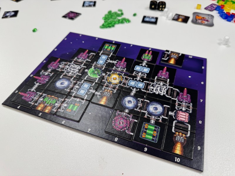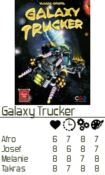 Inntil vi begynte å spille Galaxy Trucker altså. I dette spillet skal vi frakte en haug med skrot fra en planet til en annen, og ingen av oss har skip til å frakte det med. Så løsningen er opplagt: vi bruker skrotet til å bli et skip, og så frakter vi skrotet med skrotet i seg selv. Genialt, Egon!