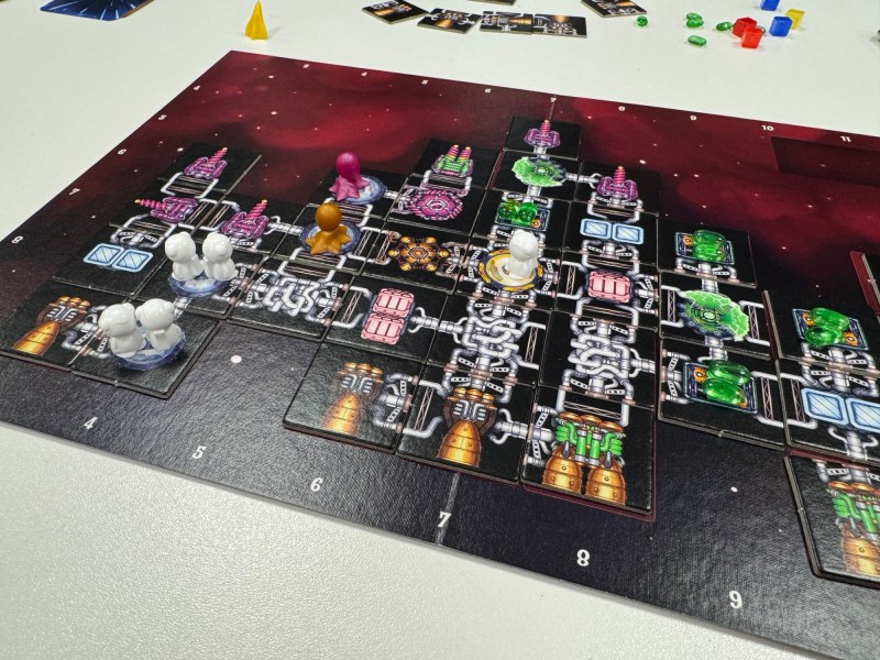 delte vi oss i to, hvor fire gikk til Lords of Waterdeep, et worker placement spill i Dungeons & Dragons-setting, men hvor temaet egentlig er helt borte-vekk. Du samler oransje, sorte, hvite og lilla kuber, ut fra hvor mye et kort sier du skal samle, og får poeng. Du kan sende dine arbeidere på steder som gir deg små dråper av ting.