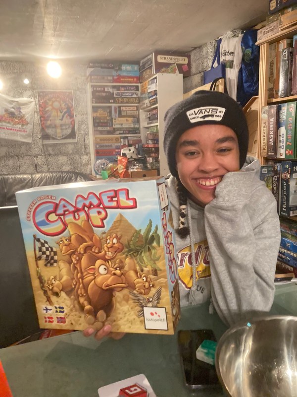 Som en avsluttet tok vi en runde 7 manns Camel Up sammen Raidersgjengen. Og dette ble en fantastisk runde Camel Up på sitt beste. Kamelene skiftet plass og alt kunne skje, hver runde. Så mye moro, faktisk såpass mye at Tone ville kjøpe spillet etterpå. Det ble Astrid som trakk det lengste strået denne gangen og kunne ri på kamelen inn i solnedgangen.