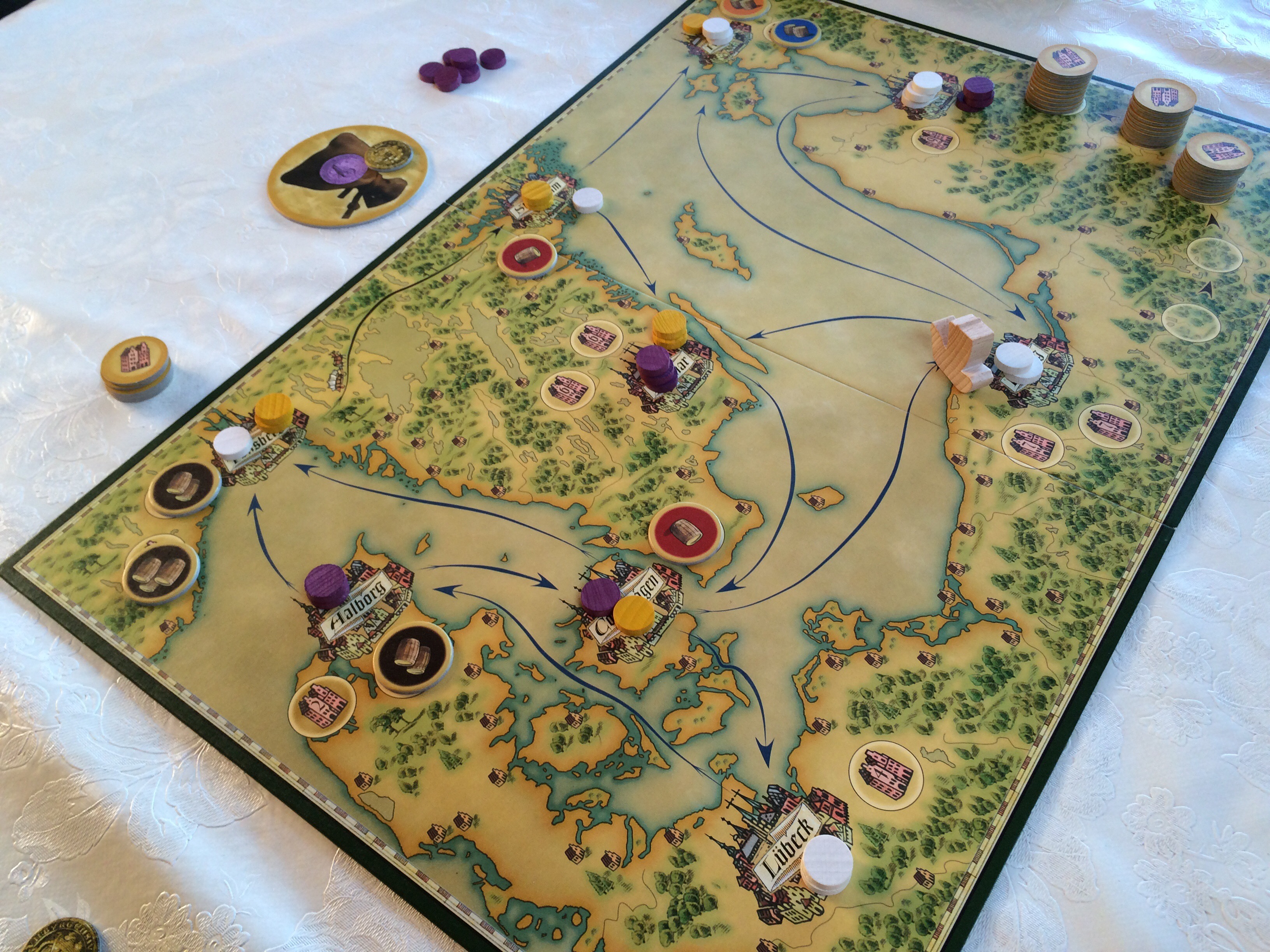 Da var det allerede del 3 av PGs summerspilling. Denne fredagen fant fem spillere veien til Holland House. Vegard som nettopp hadde kommet hjem fra Nordsjøen, hadde tatt med seg tidligere pokerstar Tom Erik. Kveldens første spill kom fra den gamle boksen og hadde ikke blitt spilt i PG på lenge; Hansa. Her skal man seile, kjøpe og selge tønner, bygge handelsposter og til dels plage andre. Særlig det siste fikk Vegard oppleve da Tom Erik ved flere anledninger plasserte skipet i Riga, mens Vegard hadde mest lyst til å nå Aalborg og Tønsberg. Men man kan alltid gjøre noe i dette kjappe spillet. Med bare en handling per by er det ganske oversiktlig. Tom Erik ventet lenge med å samle tønner, for han hadde posisjonert seg bra på brettet. Vegard og Hollender hadde allerede sikret seg en del brikker med tre tønner, men begge hadde ikke ennå så mange handelsposter. Hollender forserte den siste runden og kun Tom Erik kunne gjøre noen handlinger etterpå. Tellingen viste et ganske jevnt løp.