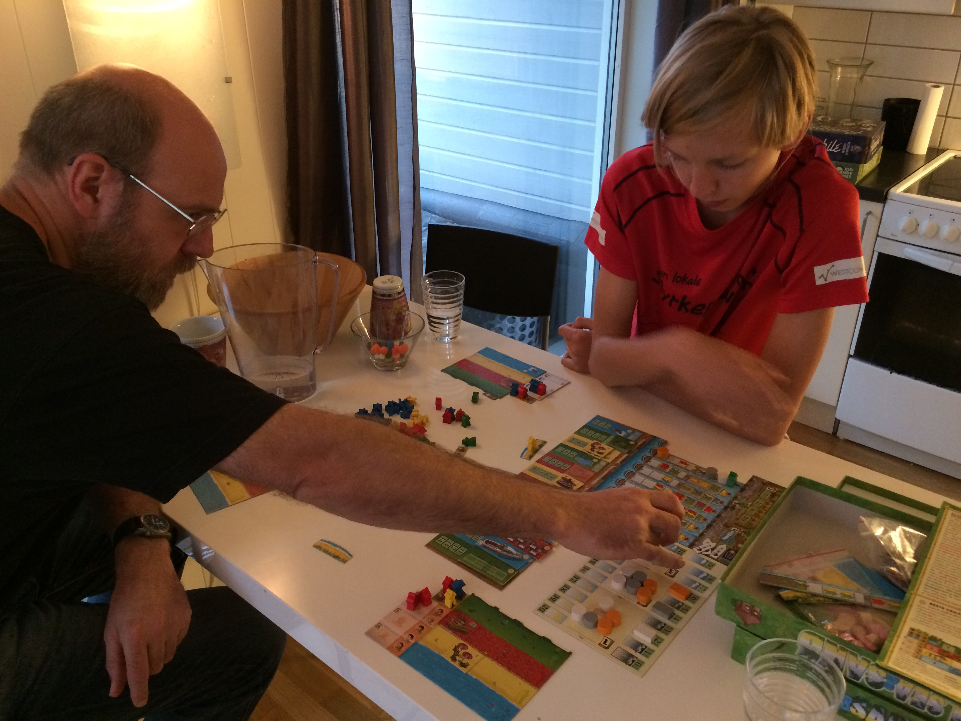 Neste dag ble det formiddagstur med brettspill etterpå. My Village ble spilt av Oscar,