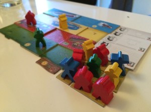 Mens vi ventet på potensielle etternølere tok Sveinmain frem Imperium, eller 8 minutes empire som det også heter. Kjell Henrik, Saulius og Petter var klare til dyst. Her skal en kontrollere områder i en verden med hjelp av kuber, samtidig som en skal score poeng på kort. Ikke mange valgene, men likevel forvirrende nok. Men noen tok poenget bedre enn andre og Kjell Henrik fikk til noen gode områder på kartet som var tynt befolket og kontrollerte disse. Vi andre sloss om smulene og Saulius ble offer for sabotasje. Kjell Henrik vant det hele 1. Kjell Henrik 12, 2. Saulius 10, 3. Petter 9, 3. Sveinmain 9.