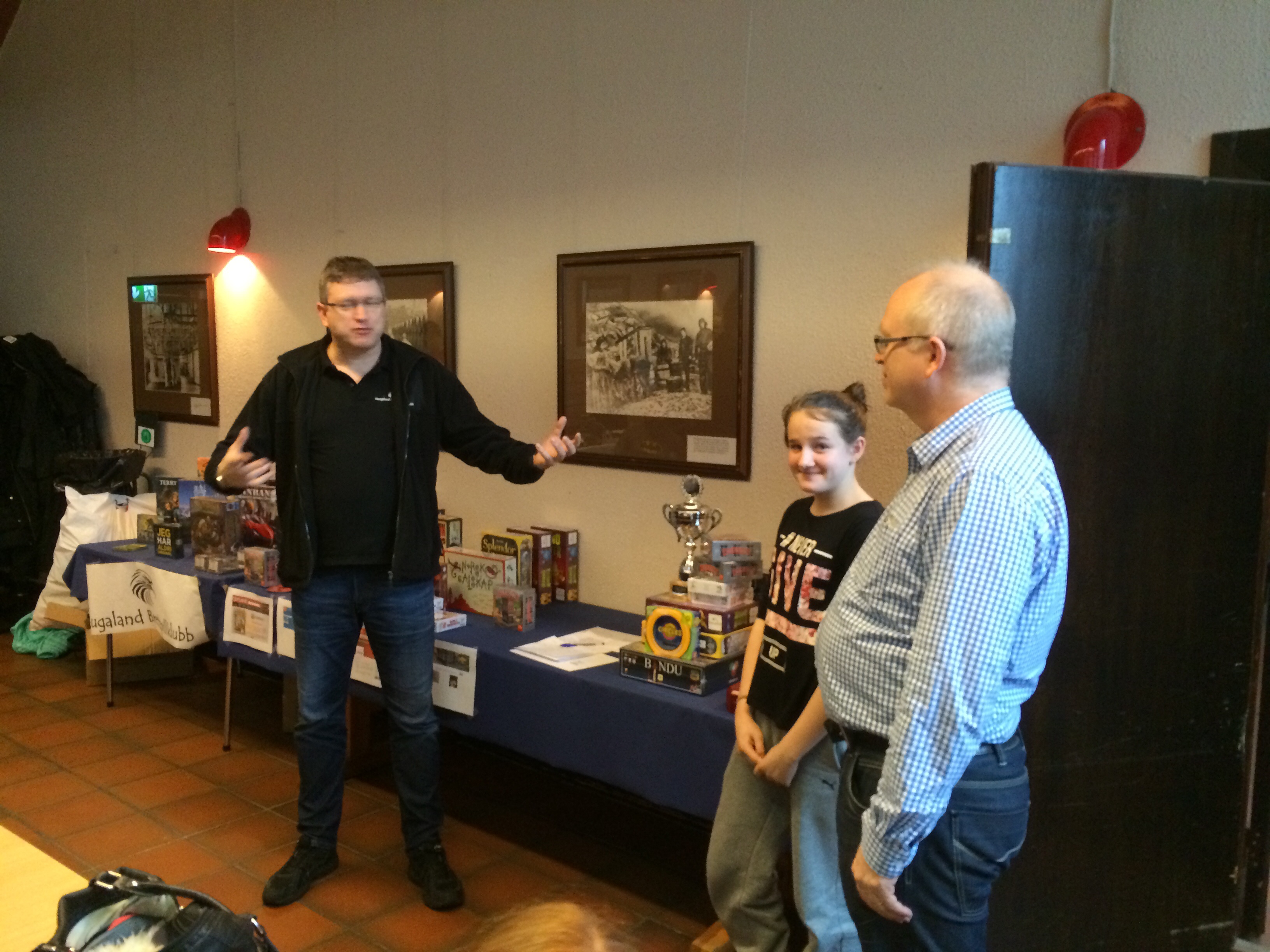 Så var det klar for Einarshow og premiesermoni, og PG skulle endelig ha en vinner blant turneringene på Mid Winter etter å ha prøvd i 8 år. Så hvorfor ikke ta hele kaka når en først har sjansen. PG-Peter ble NM vinner i Qwirkle, og selv om han måtte dele tittelen så gjorde det lite. Sportsmanship viste han også etter at en svett jury ikke hadde forutsett at de måtte ha to pokaler og gav pokalen vekk til den andre vinneren. Men tittelen tar en aldri fra han, NM vinner i Qwirkle! Men kan en NM vinner være svensk?!?