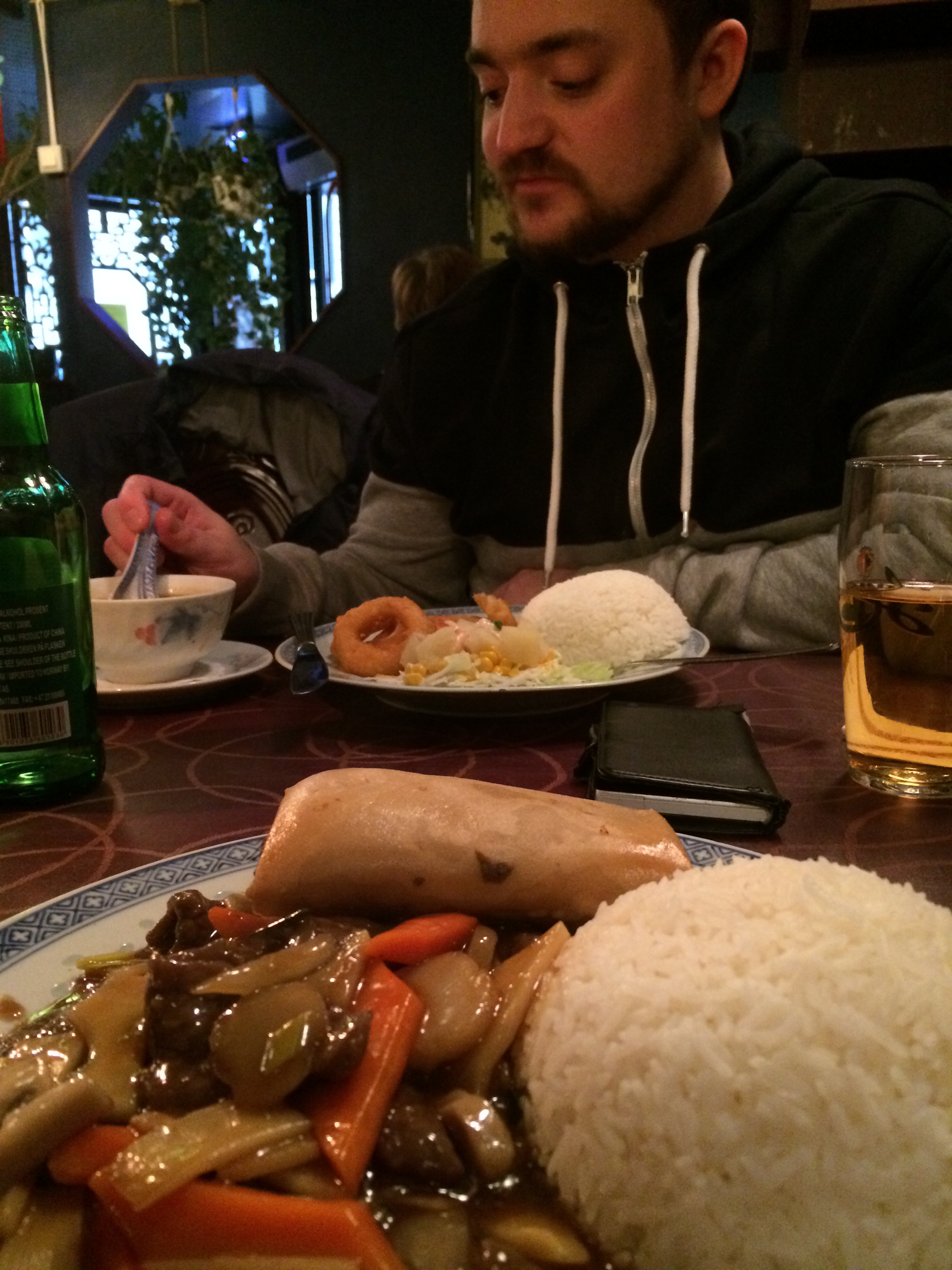 På tide med litt middag. Kinamat denne gangen hvor en kan sitte ned og spise en middag med forrett for under 100lappen. Godt med et avbrekk fra all spillinga:-)