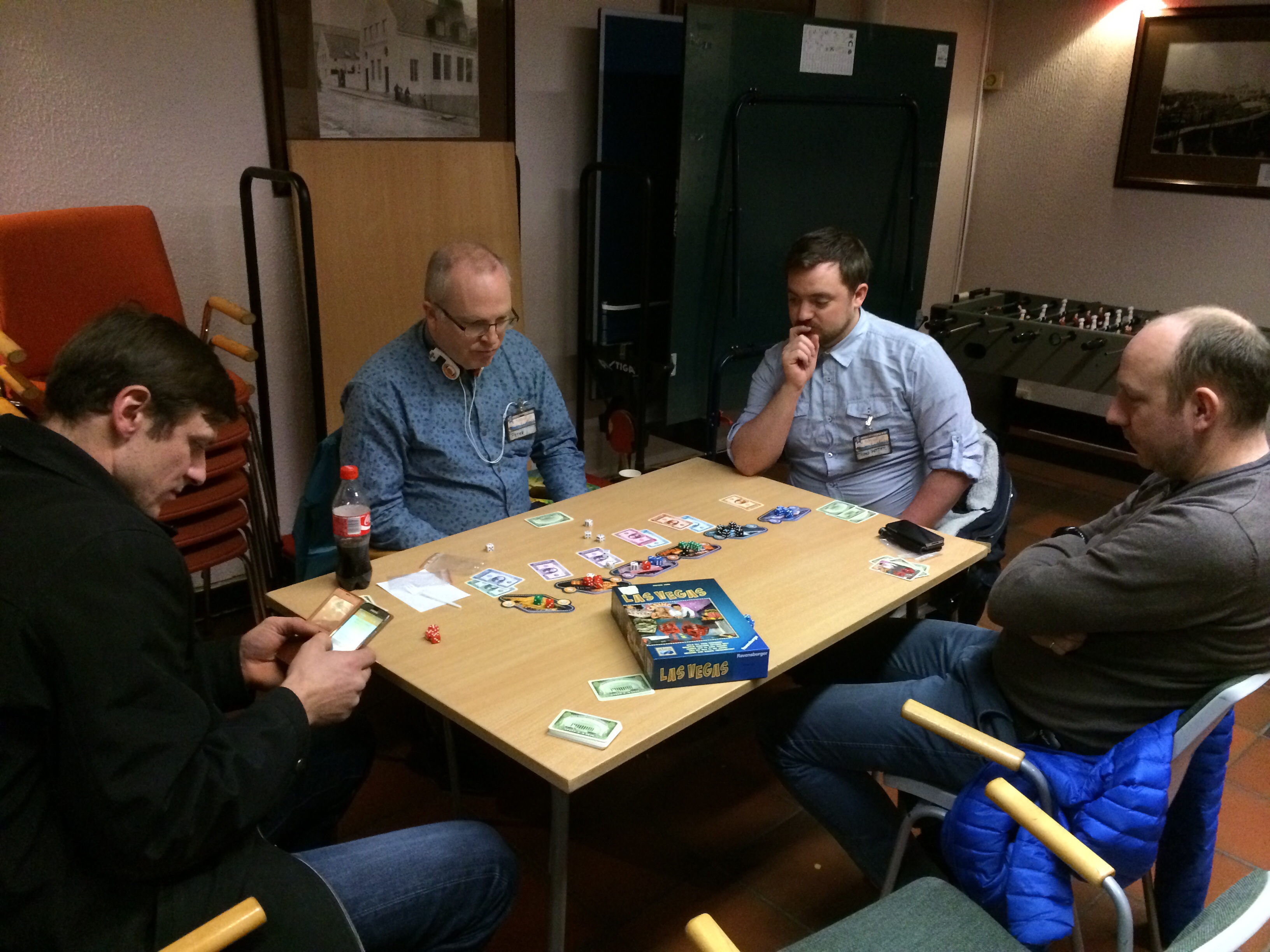 Etter Tzolkin som føltes som en jobb, ble det kebab på hele gjengen. Etterpå var det på tide med noe lett. Svein tok frem Las Vegas, og vi kjørte fullt bord med Saulius i tillegg til oss som hadde spilt Tzolkin. Det ble gode dueller med 5 spillere, og mye kjemping om de ulike kasinoene. Spillet falt godt i smak hos de fleste og u.t. er glad for å ha sikret seg et eksemplar i porteføljen sin. 8/10.