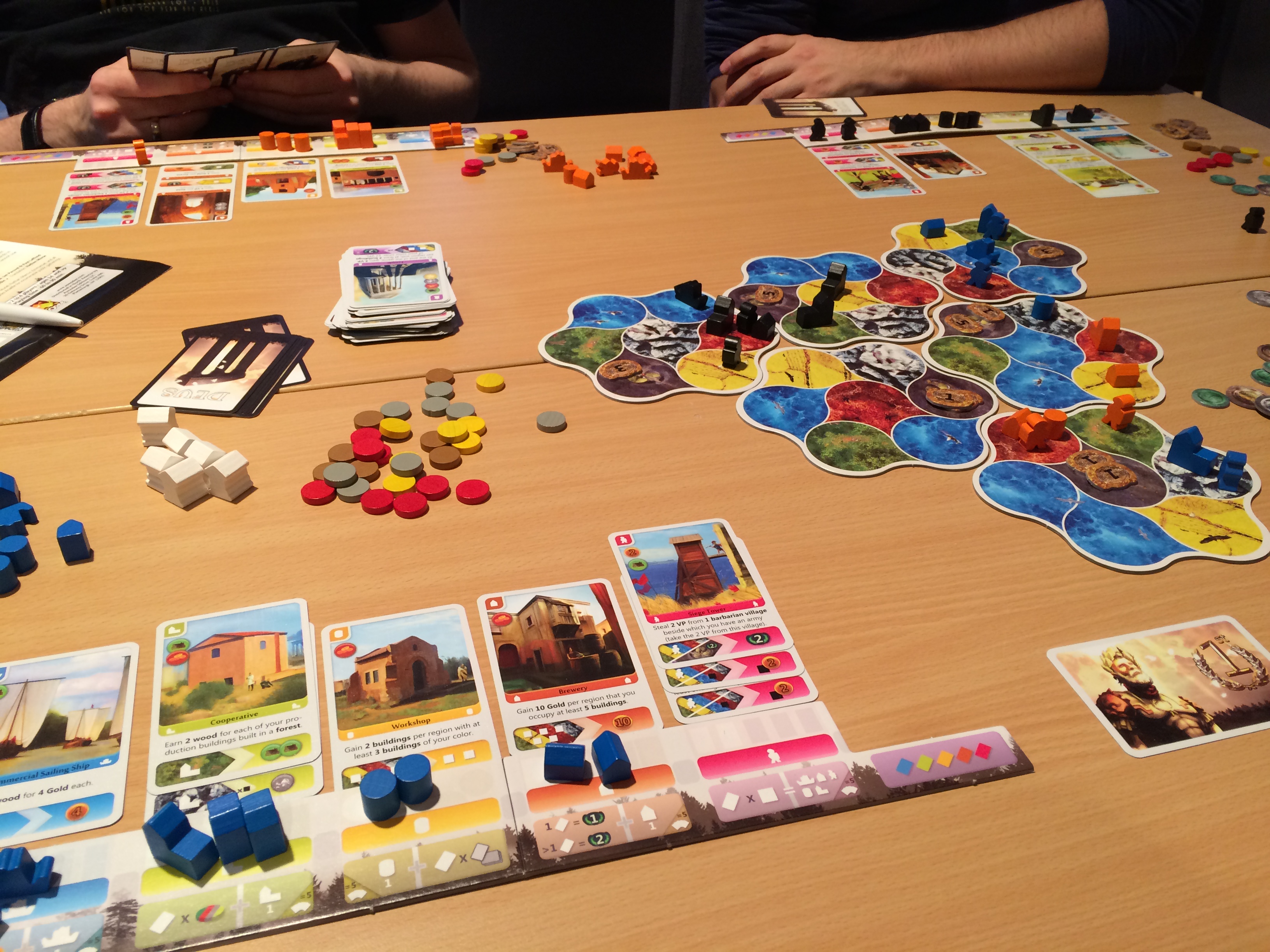 tydelig hvilken effekt kortene hadde. Black Ant startet med å spille arkitekt og alle andre fulgte denne oppskriften. Black Ant var forvirret da han mente at han ikke kjente igjen det Italienske kartet fra sist gang, men dette ble oppklart da Hollender fortalte at brettet har to sider. Hollender kjøpte de første kortene, men Kate og Ant fikk tak i både en konsul og en ekstra arkitekt som hjelper med utvikling videre. Kate samlet på Mars-guden og var tjent med å få flere kolonister på brettet. Ant valgte en alhambra-strategi som gikk ut på å sikre billige varer, og kjøpe kort uten alt for mange ekstra kostnader. Kate spilte Prefekt da Hollender hadde et fult lagerhus. Særlig når man produserer skal man følge med hva andre samler på. Hollender kunne dermed ikke få inn nye varer. Spillet fløt godt og tempoet lå høyt. Spillet gikk mot slutten og Black Ant kjøpte det siste kortet og sikret seg 7 poeng. Hollender og Kate produserte varer for å få poeng for penger. Tellingen i Concordia er alltid spennende. Black Ant sikret seg seier denne gangen, mens Kate var forvirret om hun skulle være glad med bronse eller sørge over en siste plass!? Men hun vil komme sterkt tilbake neste gang!