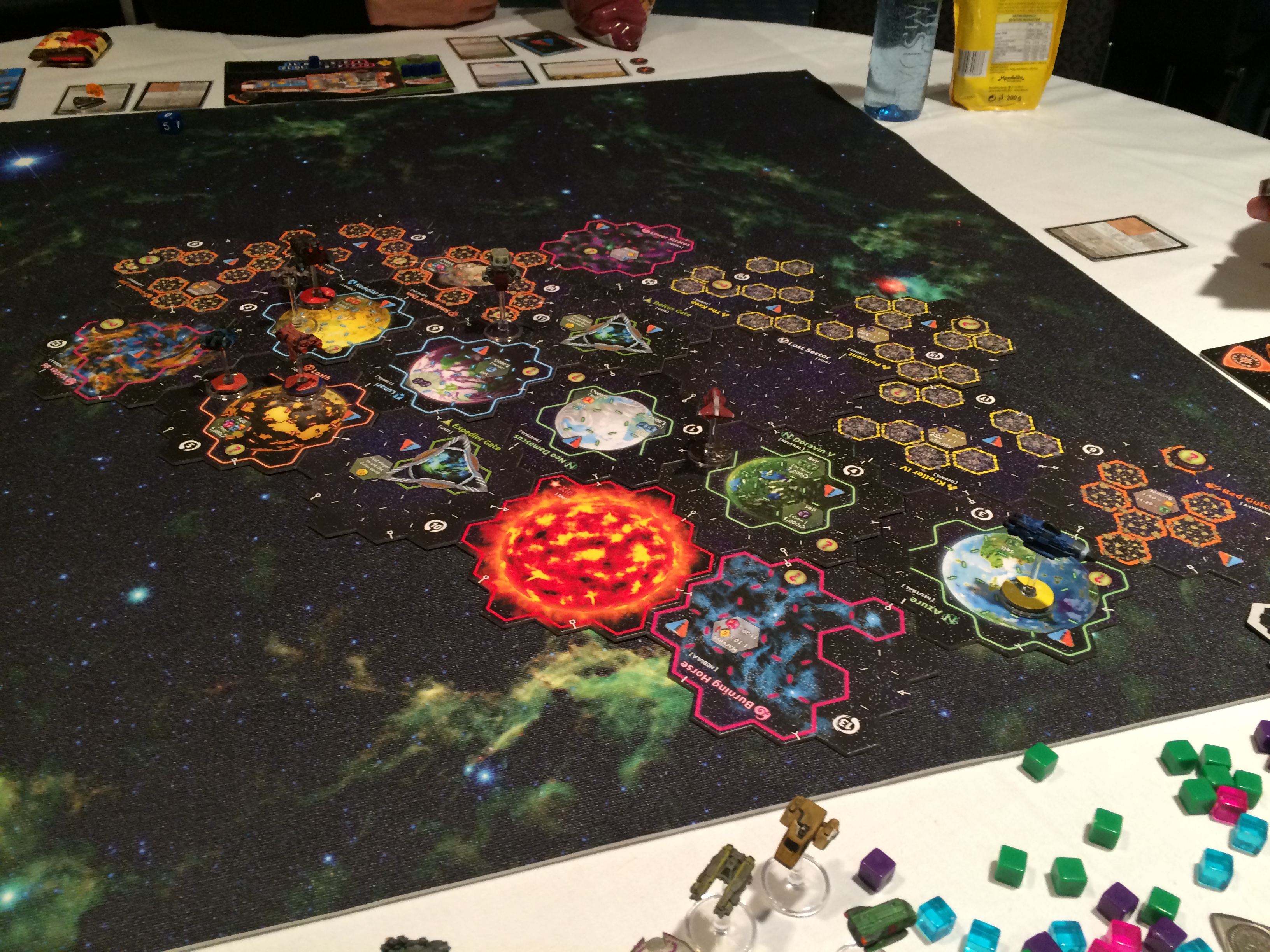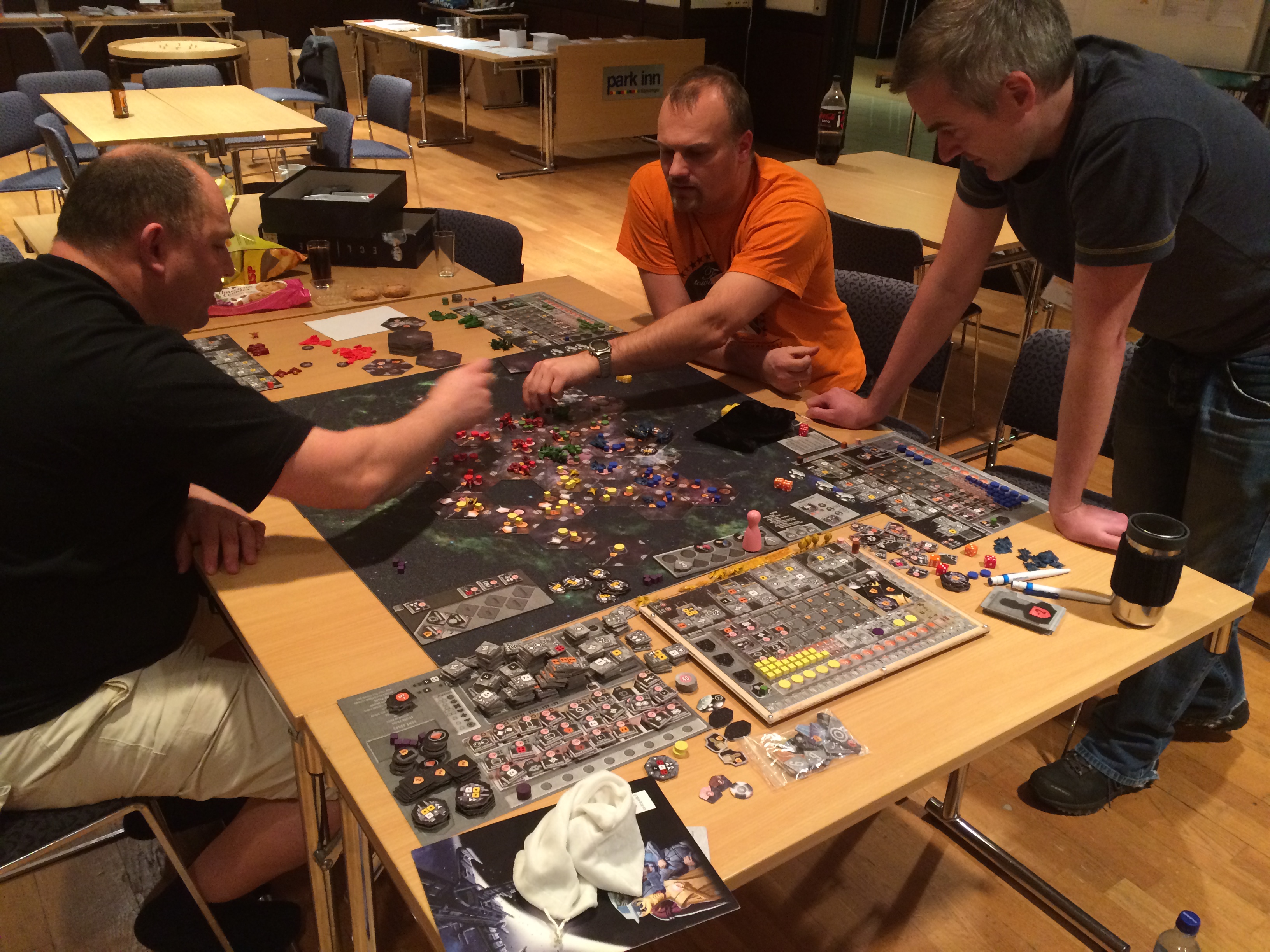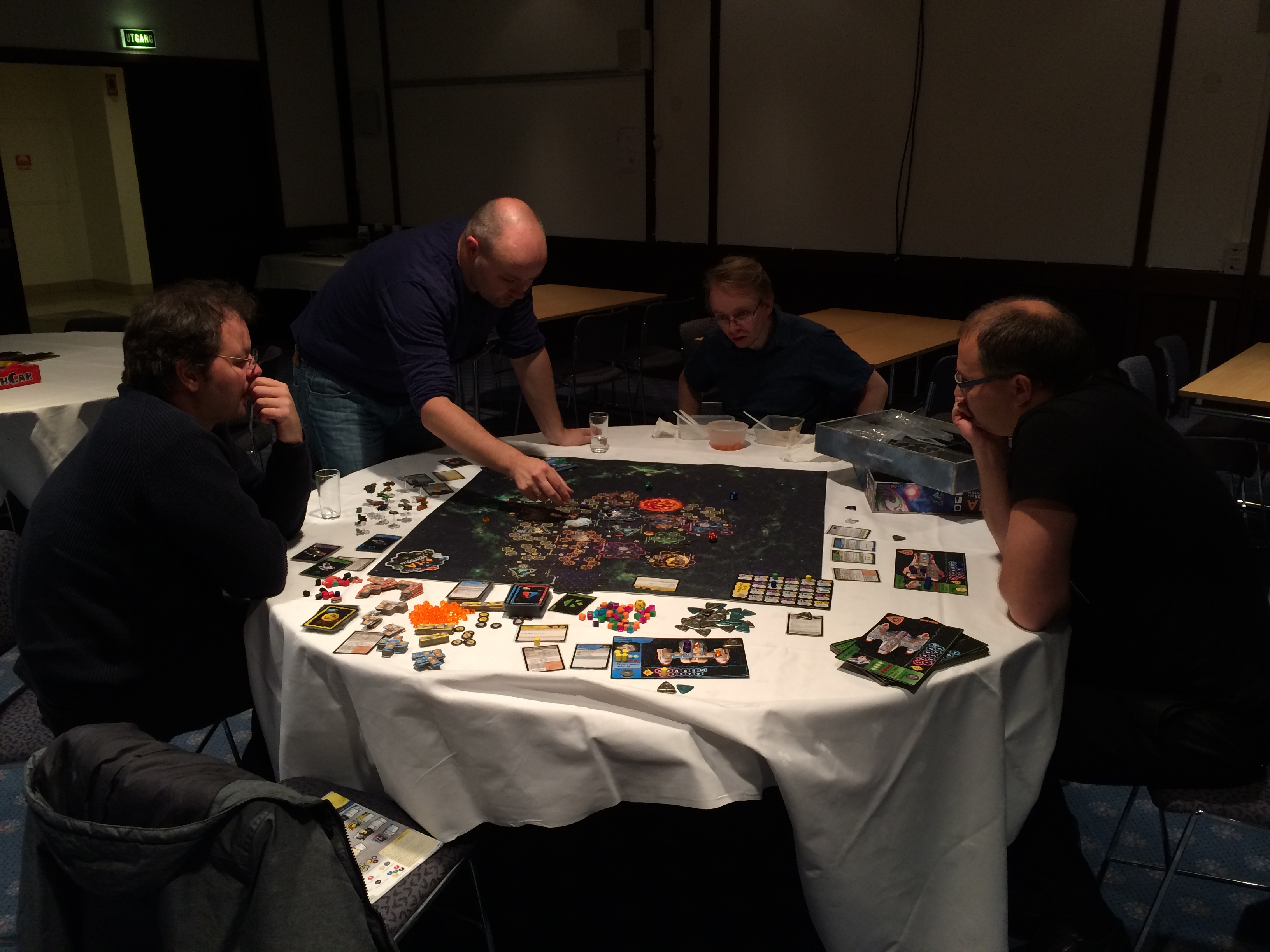 Takras hadde fått herrene med i Tash-Kalar som ble spilt som lagspill. I dette spillet skal man sette ut krigere og kontrollere områder som gir score avhengig av Svein2-combination startet med en ledelse og forsvarte denne godt. Men så kom Pift med noen sterke utspill mot slutten og sikret seier til Pift/Takras-teamet. Black Ant syntes lite om spillet, men de andre tre kunne godt spille det igjen.