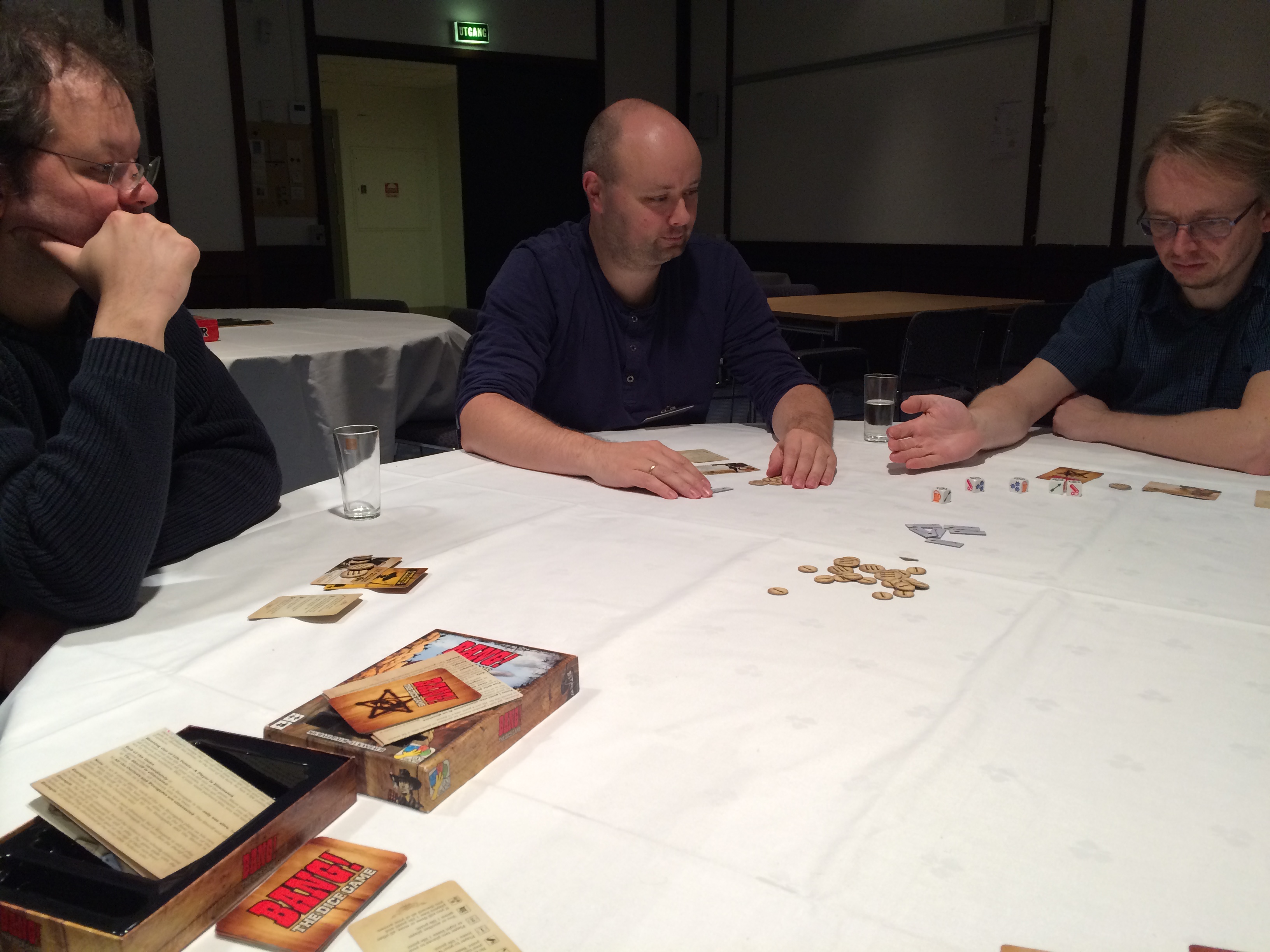 Med litt tid før fergen gikk, kunne Takras spille enda et spill; Bang the dice game. Hollender liker ikke Bang, men ofret seg for felleskapet. Sveinmain er en ekte sheriff og elsker interaksjon hvor man skal eliminere hverandre. Som forventet røk Hollender ut først og så Takras.