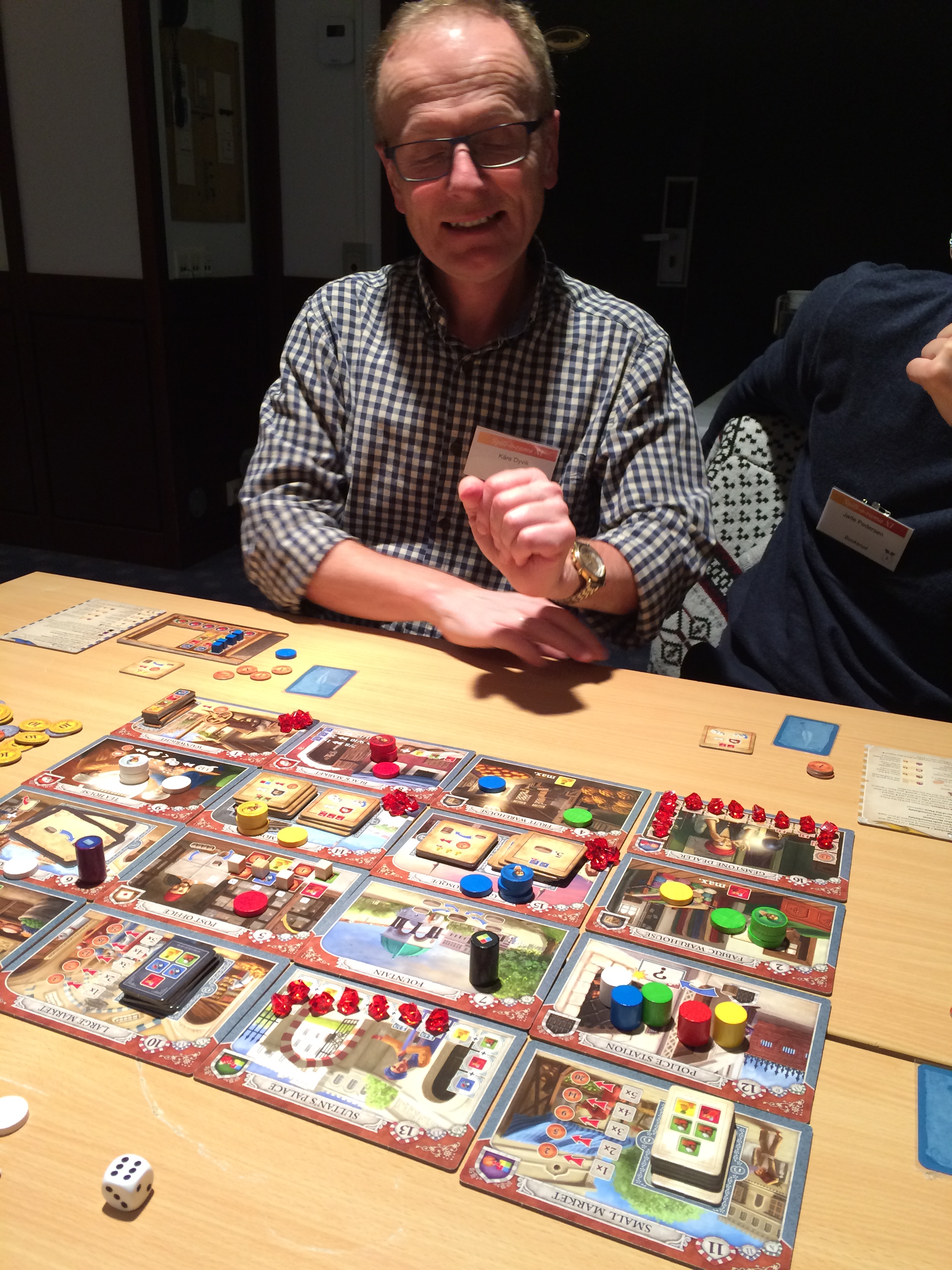 kumulerende effekt og så ofte mye penger, men alt er avhengig at man eller andre også kaster det nettopp det tallet. Pift hadde bygget opp en sterk 7-er motor, men han kastet ofte 6 og dermed ble det ingenting. Sveinmain ledet stort, men fikk så fullstendig stopp de siste rundene, mens Hollender fikk takket være mange kast på 10 mye penger. Hollender fullførte sine fire mål og vant så Machi Koro. Machi Koro er et lett fengende spill. Man vil gjerne spille det om igjen og det spilles lett. Samtidig kan det oppleves som noe frustrerende når terninger ikke går din vei.