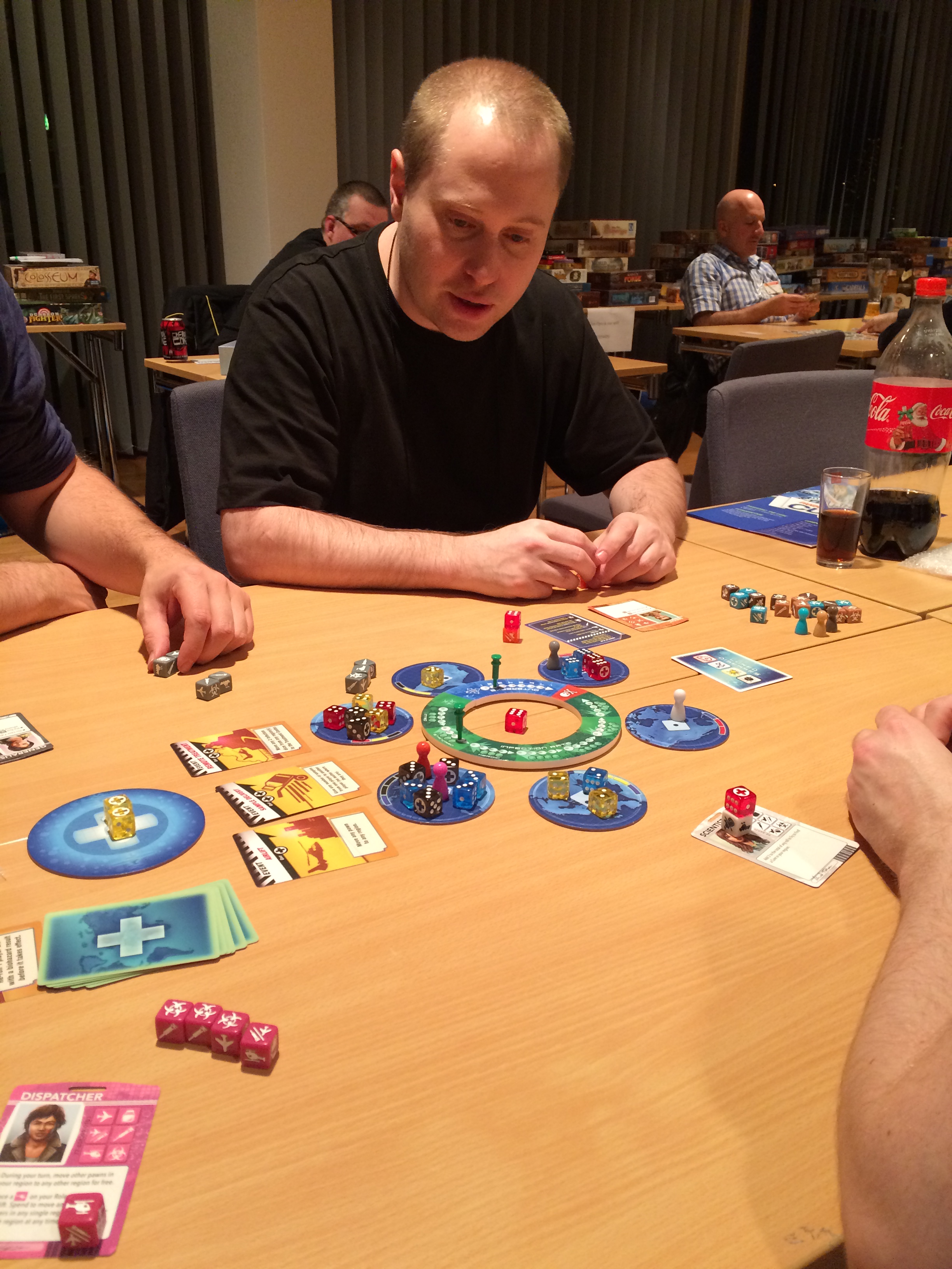 ![]() Én av nyhetene fra Essen var Pandemic: The Cure. Dette er Pandemic, så alle samarbeider og har hver sin unike rolle. Denne gangen er det terninger som bestemmer alt og ingen kort. Terningene er sykdommer, men hver spiller har også sine terninger. De terningene er helt unike for hver spiller og gjør alt ett hakk kulere. Egendefinerte terninger per rolle du har er genialt og fungerer godt. Selve spillet er nådesløst og slår hardt når det kan, selv når det ser ut som det går bra. Jeg ble forresten forræder også her, selv om det ikke finnes i spillet. Når du triller terningene kan du nemlig treffe på biohazard-symbolet som gjør alt mye vanskeligere. Jeg trillet bare slike… Hele tiden. Tydeligvis en forræder, ja. Spillet er knallkjekt og ble spilt mange ganger, men fy så vanskelig! 8/10 |