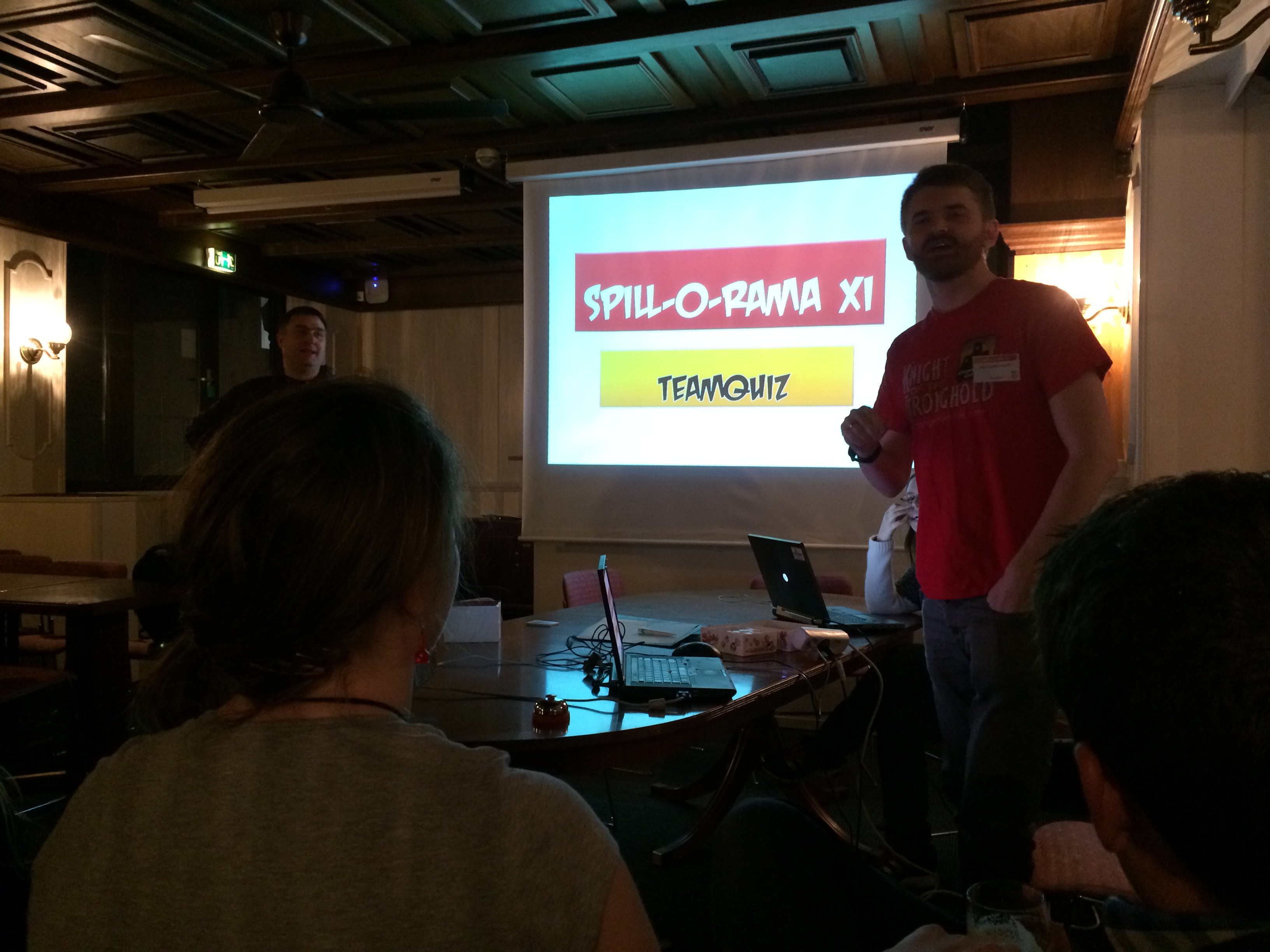 ![]() ![]() Mens vi spilte Eclipse var det tid for Quiz, arrangert av Trond selv, Katherine, Mandy og Geir Harald. Denne quizen var ny for min del, jeg har skippet det fordi det har tatt altfor lang tid tidligere. Nå har de endret det helt og gjort det slik at hele quizen er over på en haltvime. Hvert lag får se på fem spørsmål. Svarenes verdi er forskjellige, gjerne fra 1-5. Laget må velge det svaret de tror har høyest verdi, for så å score så mange poeng. Det var litt komplisert å forstå, men etter første runde forstod alle hva som måtte til. Vi endte opp med en tie-breaker mellom oss og et annet lag og kom videre. Under finalen kunne jeg kjenne gullhår vokse på rumpa og vi fikk massevis av poeng. Vi vant med glans. Jeg likte denne quizen. Godt jobbet. 9/10! |