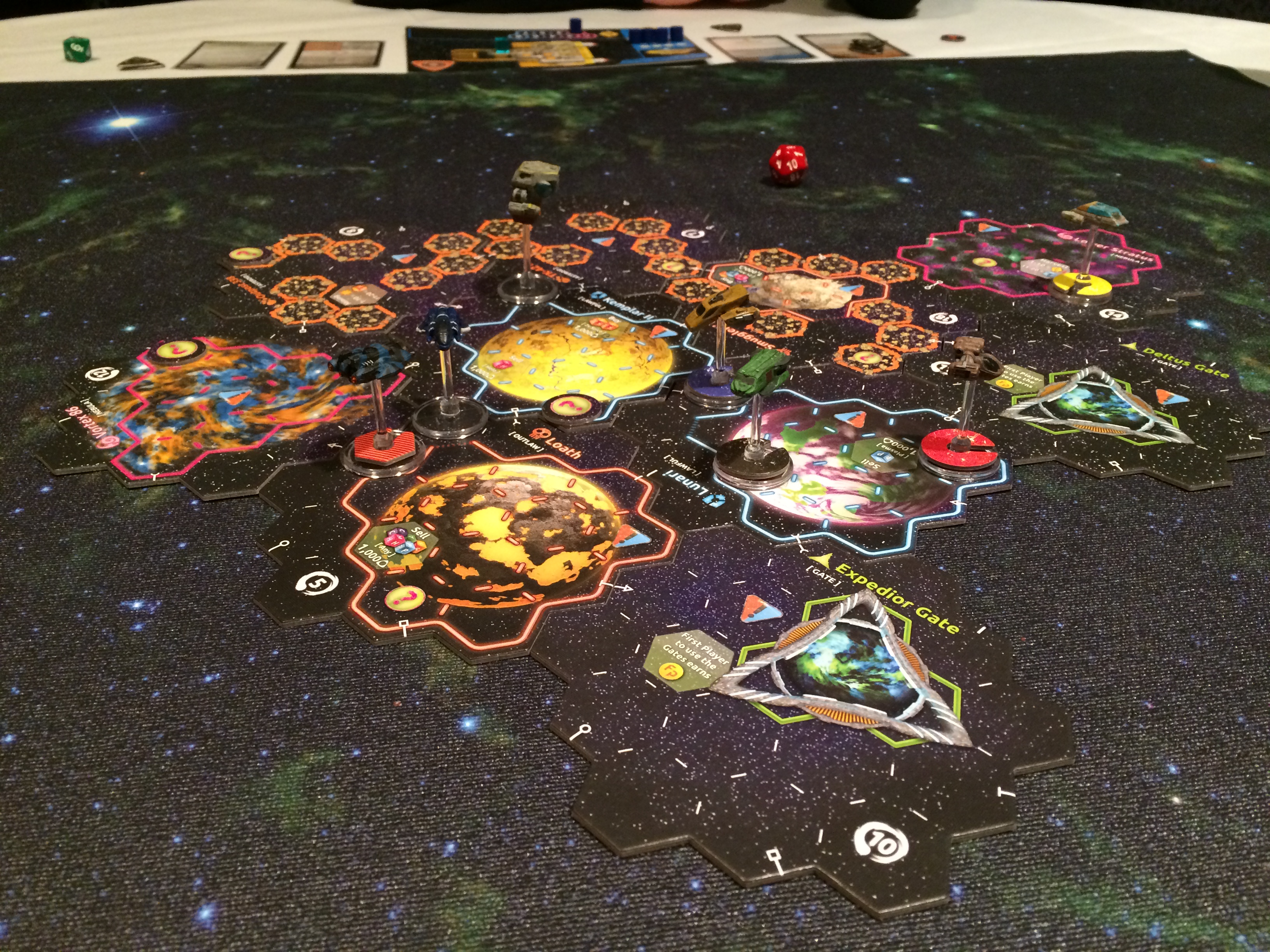 ![]() ![]() ![]() Nevnte jeg Kickstarter? Jeg gjorde visst det. Xia: Legends of a Drift System er et annet spill fra den greia og det har jeg spilt en god del ganger siden. Her skal du utforske galaksen, kjøpe og selge varer, stikke fra pirater eller politiet, mens du jager pirater og/eller politi og andre spillere. Valgene du gjør her er mange og hva som er lurt å gjøre endrer seg fra spill til spill og hvem du spiller med. Jeg spilte dette fire ganger i løpet av Spill-o-rama. Jeg var ikke i nærheten av å vinne noen gang, men heller ikke til å tape. Det straffer seg veldig hardt å dø i dette spillet, så ikke finn på noe slikt, det har jeg hardt erfart. Det tok sin tid med fire spillere, så jeg tror jeg skal holde meg til tre, som faktisk er minstekravet. Selve spillet er diggbart. Mye flaks, veldig mye flaks, men også mye du har kontroll over. En opplevelse. 9/10. |