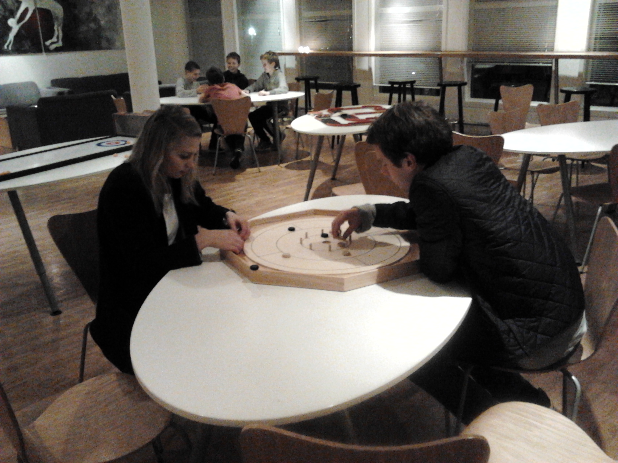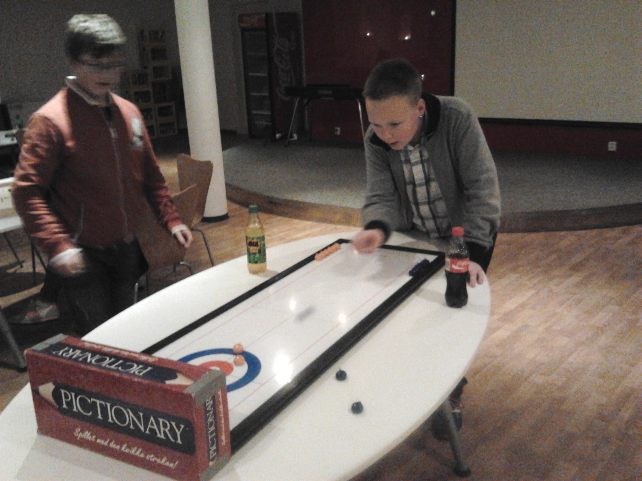 På ulike bord satte vi opp Pitchcar, TableCurling, Loopin Louie og Crockinole, samt at bardisken ble fylt opp av ulike spill. Så var det bare å vente på ungdommen.