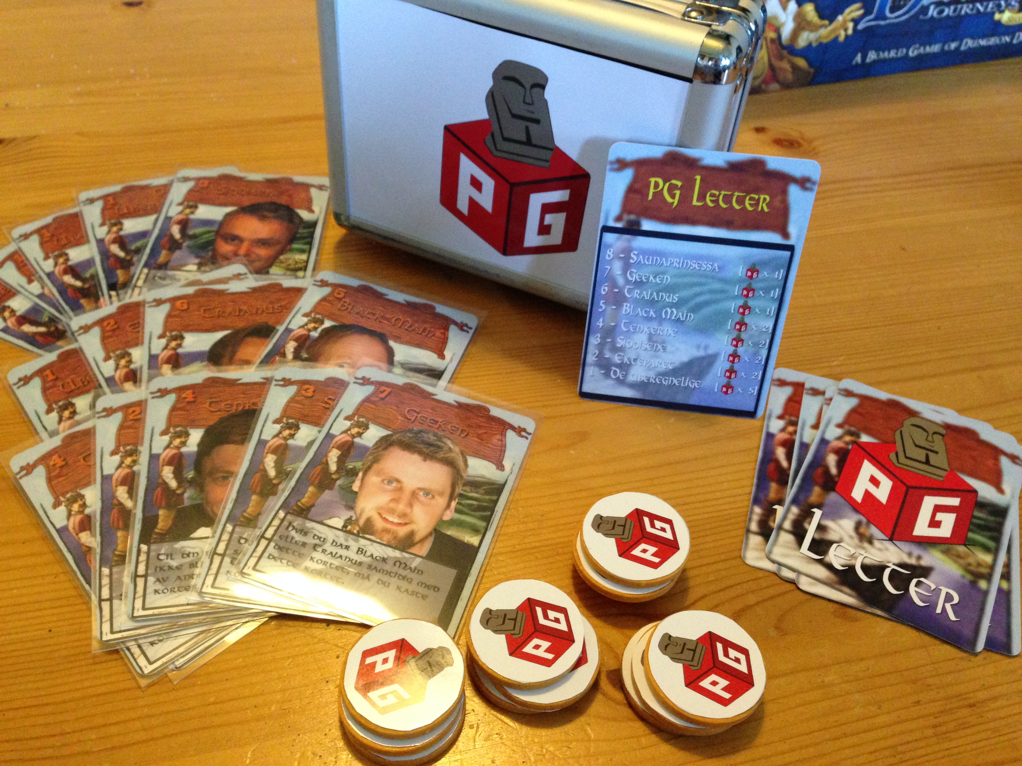 PG Letter! Ikke en så stor slaget med vanlig Love Letter, men med egne bilder på kortene så er dette en klar vinner. Introduserte PG Letter til noen som aldri har spilt det før, så det ble en interessant opplevelse. Tror de endte opp med å like det. Jeg så også flere som gikk rundt med PG-kofferten og spilte med andre, så det var en gledelig nyhet.