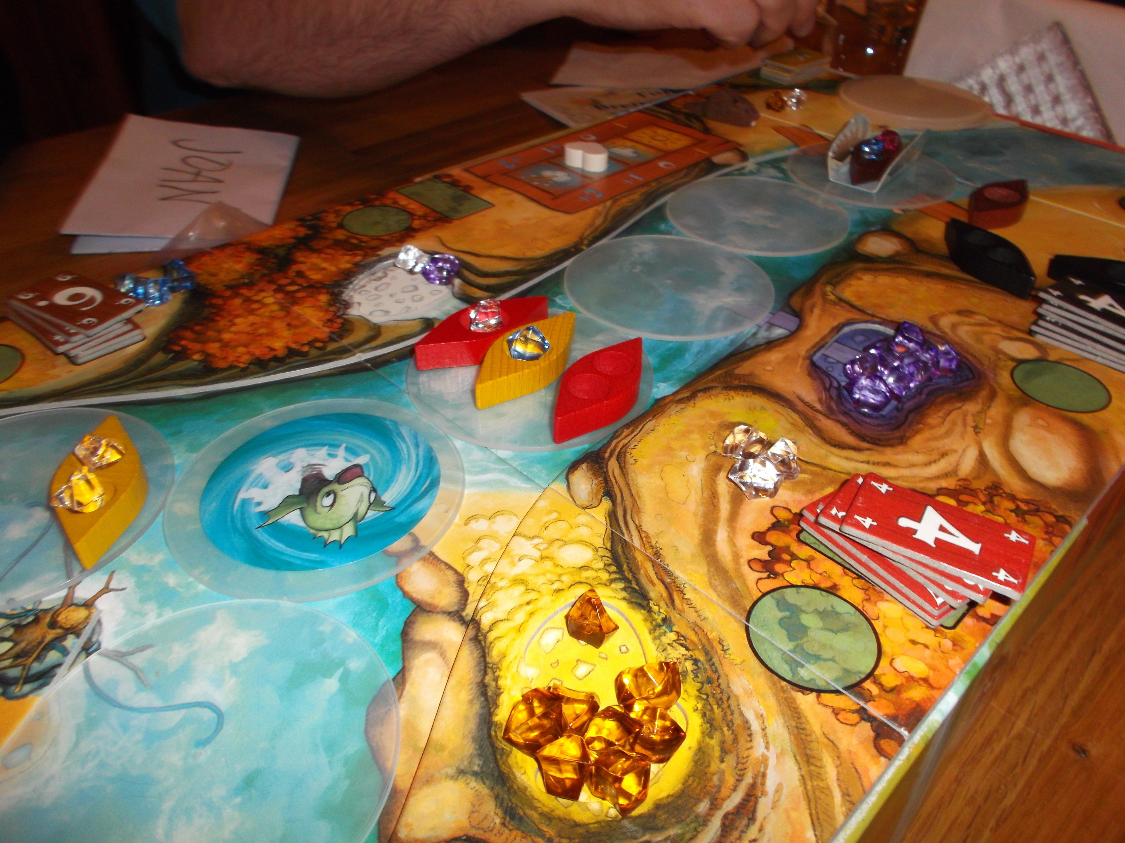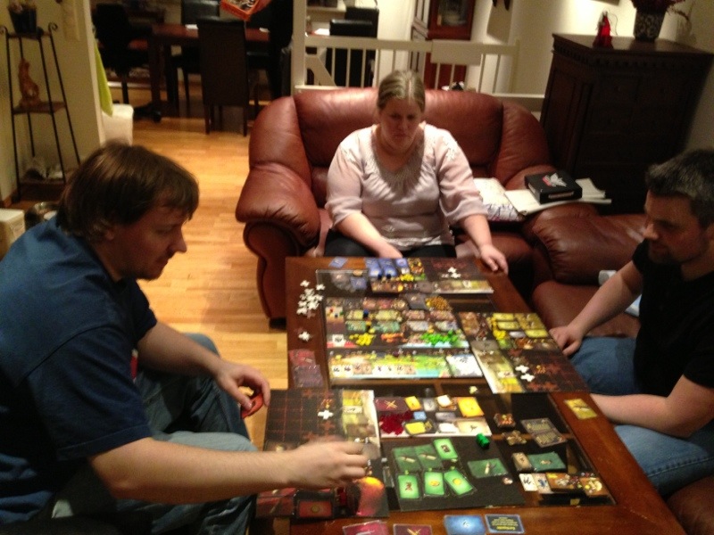 Herfra var det bare spørsmål om flaks, å trekke det riktige kortet fra utforskningsbunken og å overvinne det. Og det ble selvsagt Marog. Kivi og Kaoleena ville ha en omgang til, men både Takras og Marog hadde sett seg lei av dette spillet for i kveld. Ikke et spill man spiller flere ganger etter hverandre. Det tar rett og slett for lang tid til det. Vi brukte omlag 90 minutter på dette, og over halvparten av tiden på ikke å utforske.