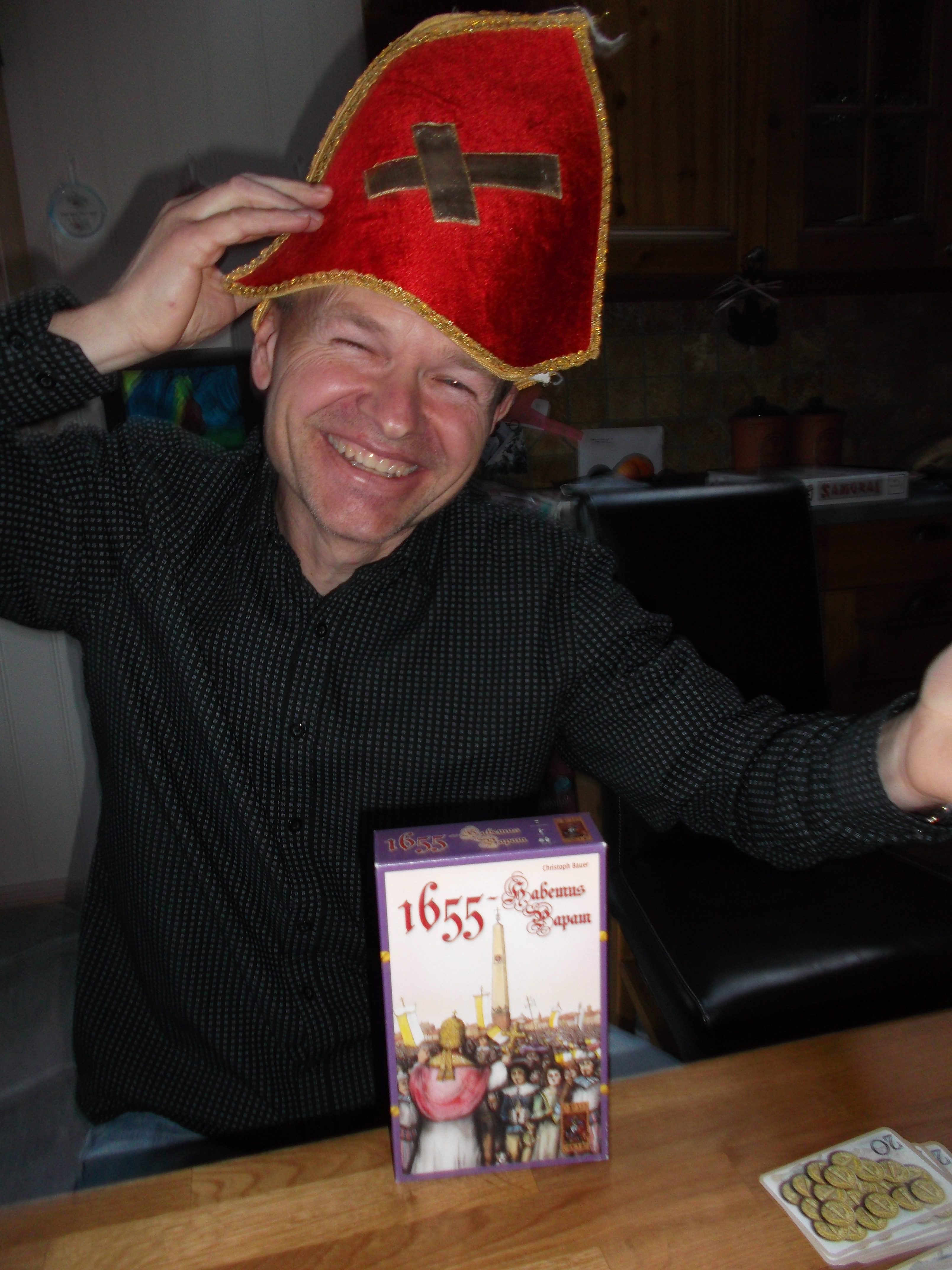 venner hadde møtt opp til en underholdende kveld. I tillegg hadde comebackmannen Sven meldt sin tilstedeværelse. Kvartetten med PG-veteraner begynte med 1655; habemus papam. I dette auksjonsspillet skal man utøve innflytelse i vatikanet for å samle flest stemmer til pavevalget. Tematisk rett ble det en del intriger, bestikkelser og skittkasting mellom spillerne som om de hadde levd i vatikanet. Særlig Sveinmain spilte regelmessig aksjonskort som gikk hardt utover andre. Peter hadde flere menn som kunne kjøpe billige stemmer, mens Sveinmain satset hardt på Louis XIVs stemmer. Black Ant bygde opp sin stemmerike rolig opp, mens Hollender som regelleser ble hardt rammet i starten og mistet to kardinaler. Mot spillets slutt ble Peter angrepet av Sveinmain, men denne parerte det godt med en annen aksjonskort. Ingen visste hvem som hadde vunnet, selv om Sveinmain korrekt påekte at Peter og Black Ant var veldig sterke. Etter en spennende teling ble Black Ant kåret til PGs nye pave. 1655 er et luftig og morsomt auksjonsspill hvor tematikken kommer godt til rette.