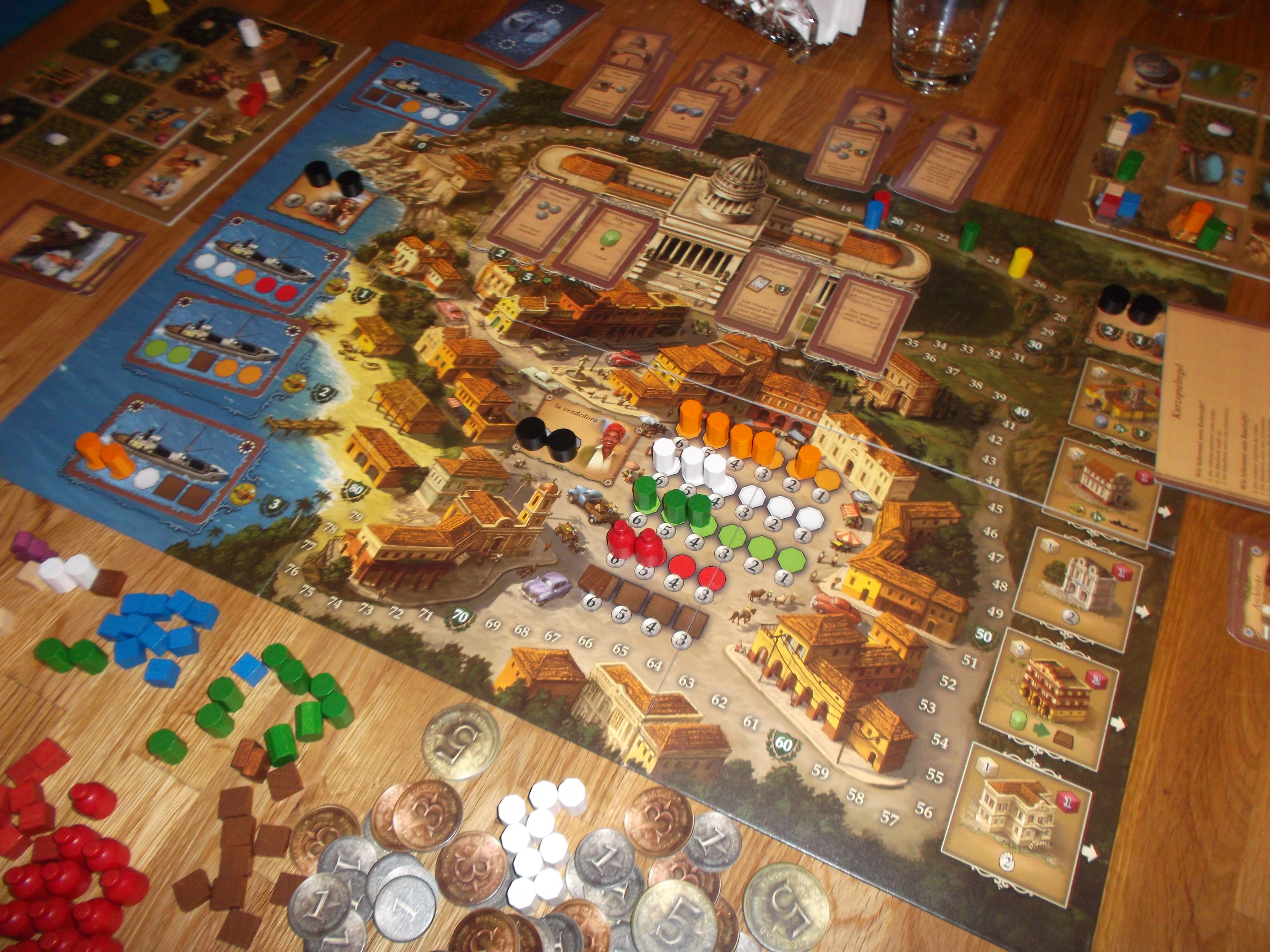 startspiller runden etter og kunne så levere 3 varer til et 3-poengsskip. Sveinmain kjøpte Hollenders yndlingsbyg, nemlig begge handelshus som gir svært gode muligheter til å lever varer ved hjelp av formannen. Særlig etter at alle kunne få poeng for sine stemmer. Hollender måtte omstille sine planer og satset heller på bygg som gav ham faste poeng hver runde. Peter og Black Ant hadde startet hver sin tobakkproduksjon. I tillegg hadde Peter fast inntekt, slik at han kunne velge nye lovverk i parlementet hver runde. Synd for Peter var at han ikke klarte å få der mest poeng alene. Sveinmain ventet forgjeves på å kunne bli startspiller, men istedenfor å spille borgermesteren som fjerde kort håpte han at formannen ville holde. Det gjorde det ikke og siden Hollender og Black Ant hadde spilt ut sin borgermester tidligere og sikret så en del gode poeng. Timing er viktig i Cuba. Spillet gikk mot slutten, mens Hollenders forsprang gradvis ble bygget ut. Det ble dermed hard kamp om den andre plassen, som Black Ant klarte