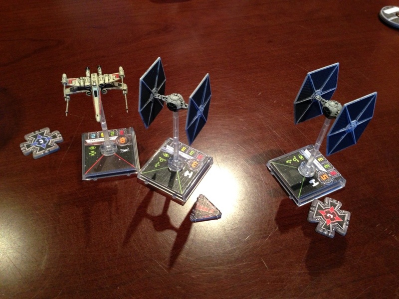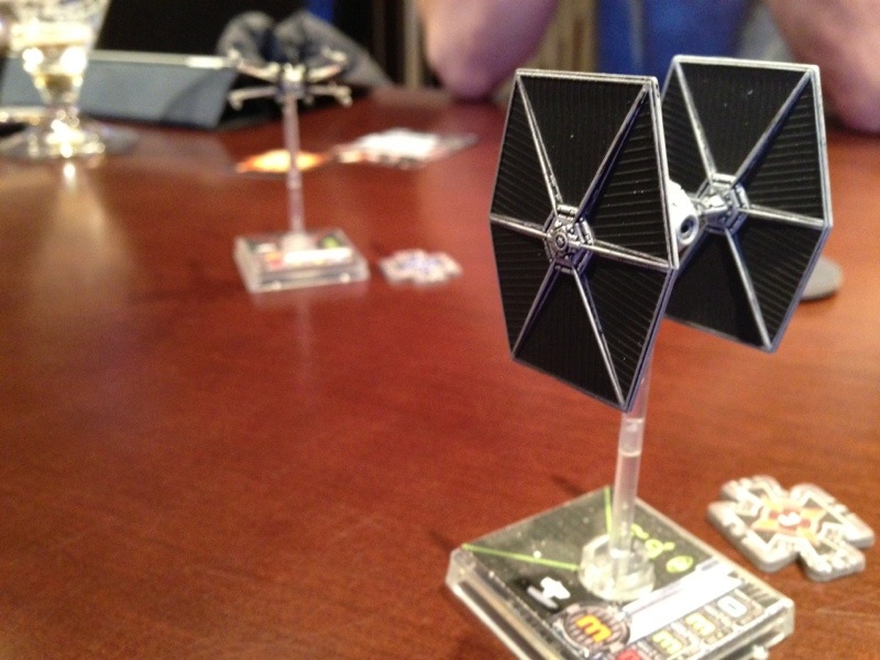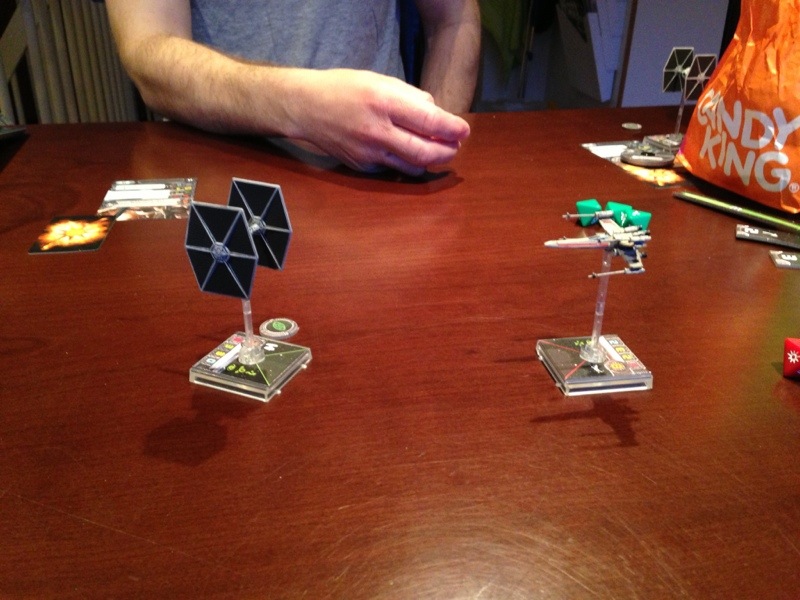 Det onde imperiet er tilbake, bare opprøreren Takras «Skywalker» kan så imot kreftene. Star Wars: X-Wing Miniature Game. Black Ant stiller opp to TIE-fighters, hvis ene skip er styrt av den skumle «Night Beast». Takras har kun ett skip, men forhåpentlig er kraften med ham. Dette er et miniatyrspill, ganske så uvant fra et brettspill, hvor vi flytter figurer rundt på bordet uten noen form for brett. Figurene styres etter forhåndsbestemte maler som legges inntil figurene og flytter deretter. Alle manøvre velges samtidig og legges ned skjult. En etter en blir de avslørt, og flyet må flytte seg slik det ble bestemt. De minst erfarne pilotene går først og de vet altså minst om hva som kommer til å skje. De kan velge en spesialhandling etterpå, for eksempel fokusere på å skyte bedre eller være forberedt på å bli beskutt. Men de vet som sagt ikke hvordan mostanderne kommer til å flytte på seg etter valget er gjort. Når alle har flyttet, så blir det kamp. Men bare om noen har noen andre i skuddlinjen. Den mest erfarne piloten (Skywalker) får anledning til å skyte først.