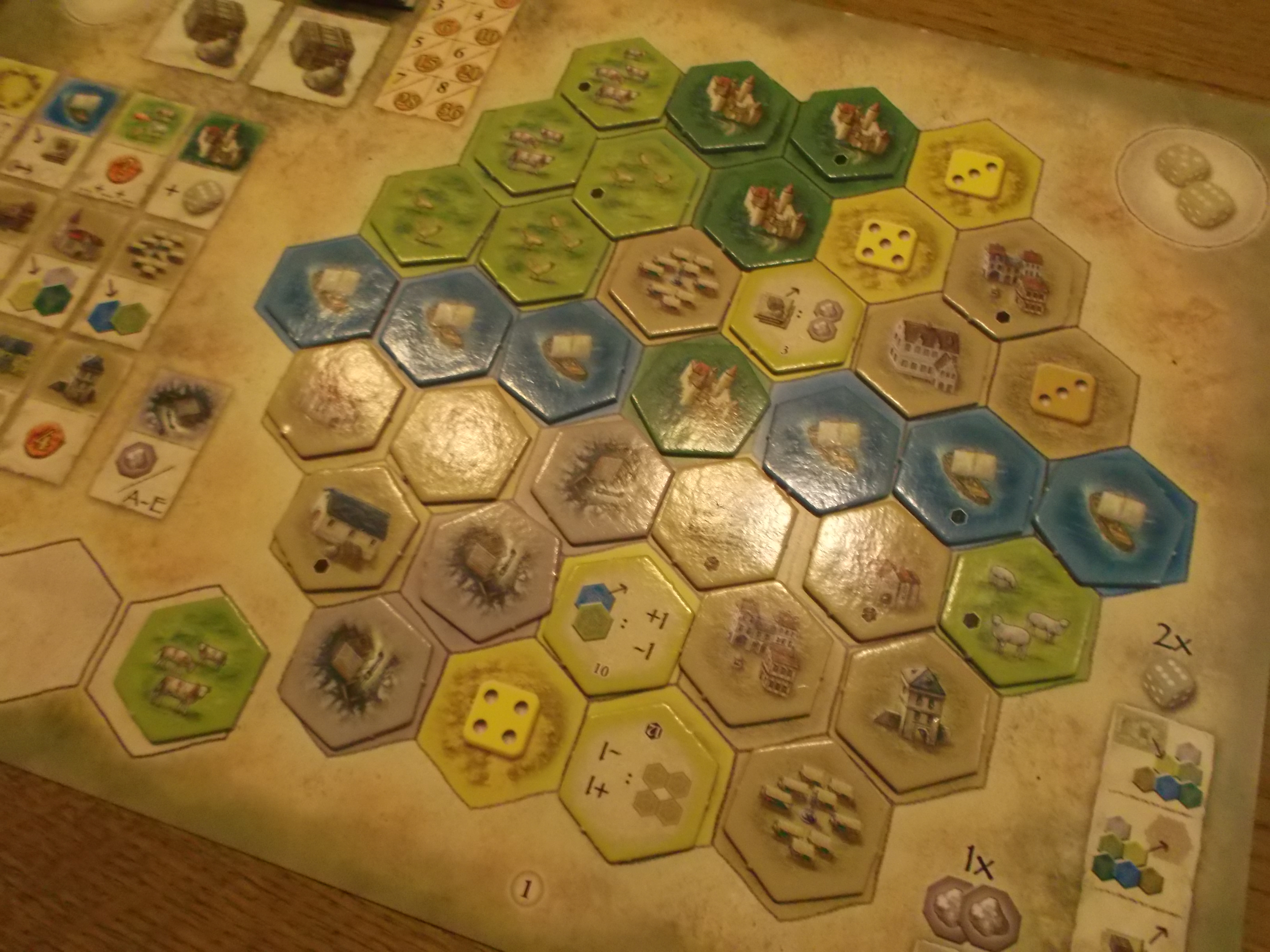 2 manns Catan var mye mer taktisk enn orginalen, selv om terningen fortsatt bestemmer litt. Forhandlinger er også mulig uten at det ble plagsomt mye av det med meg og Peter rundt bordet:-)