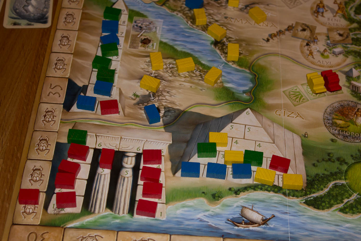 andel i henholdsvis pyramiden og templet. Peter bygget ut en god ledelse og kunne nesten juble før alle fikk sine bonuspoeng. Både Skilz og Black Ant hadde kort som ikke gav score. Hollender derimot hadde holdt lavt profil i hele spillet fikk mange poeng og endte på 108 poeng, men så kom Peter og passerte ham med 2 poeng. 1.Peter 110 2. Hollender 108 3. BA 83 4. Skilz 75