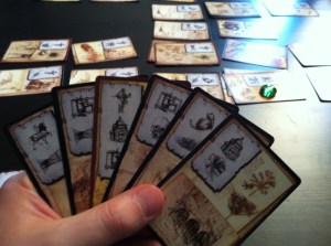 Da London snart var ferdig tok Svein frem sin nye favoritt-filler: The City. Vi kom kjapt i gang, men med 3 nye spillere ble det som vanlig mye knoting med kortene. Hva skal jeg bygge, og ikke minst: Hva skal jeg hive hvis jeg bygger dette kortet. Så var det telling av kort og poeng og et nytt kort som skulle bygges. Sveinmain og Takras fikk mest fart på byen sin i begynnelsen og fulgte hverandre tett. Så fikk Innante vind i seilene og hele 20 poeng på en runde. Luka var tettet før siste og avgjørende, hvor Sveinmain klarte å bygge 7 poeng noe de andre 2 ikke klarte og dermed ble det hjemmeseier. Hollender stakkars fikk aldri fart på maskineriet og skjønte spillet da det var for sent, og dermed gav han karakter deretter:-) The city – fortsatt et kjekt spill!!!