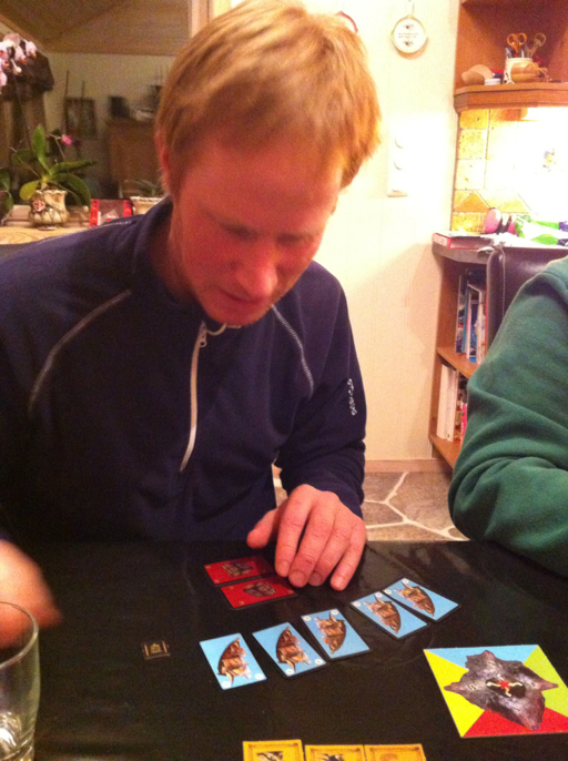Men så kom den runden da du ikke hadde et eneste kort i den retningen som ble stemt over. Da kan du stå over hele runden, det er absolutt ingen ting du kan gjøre. Det fikk Takras oppleve, og han benyttet anledningen til å ta noen ekstra bilder. Heldigvis skjedde dette bare én gang, og ingen sure miner.