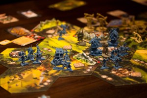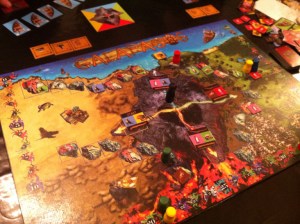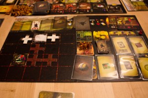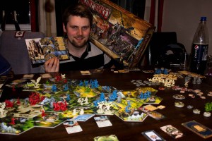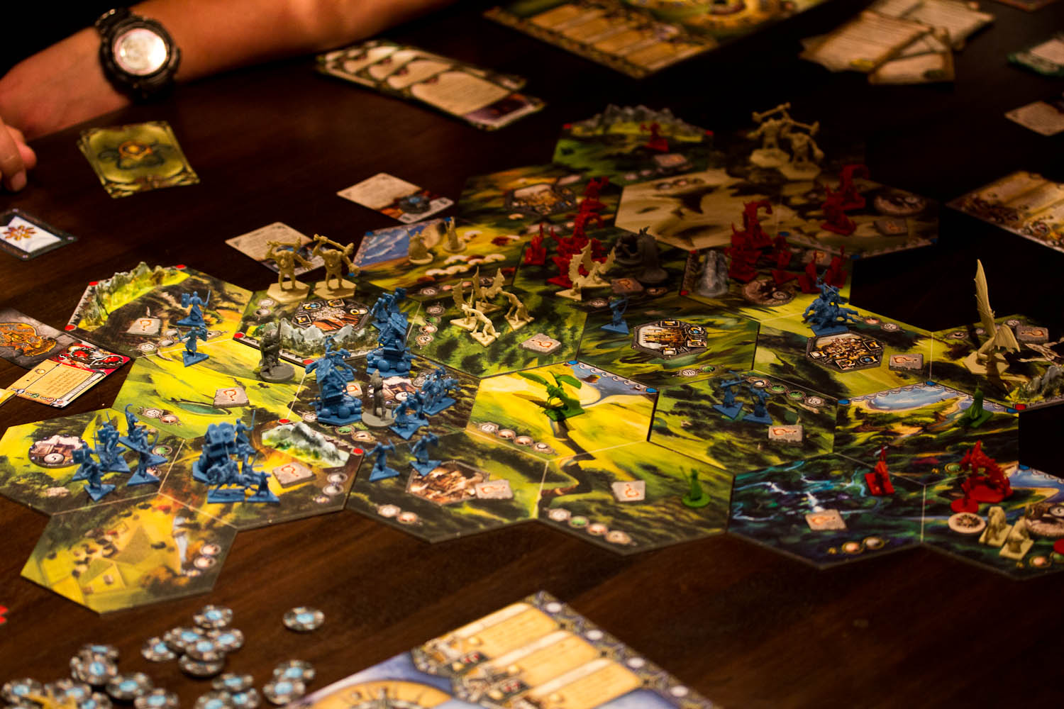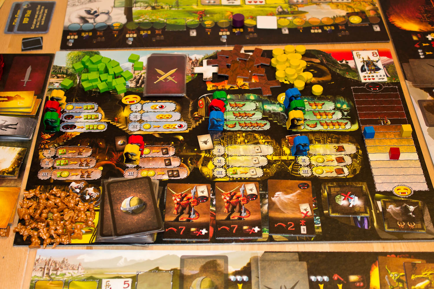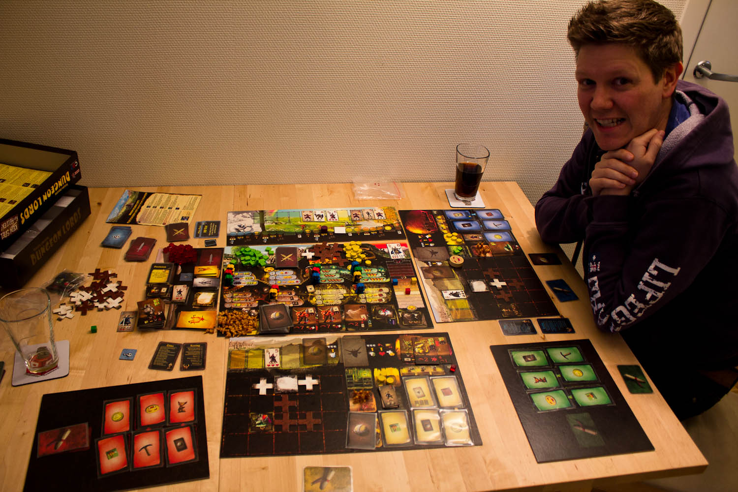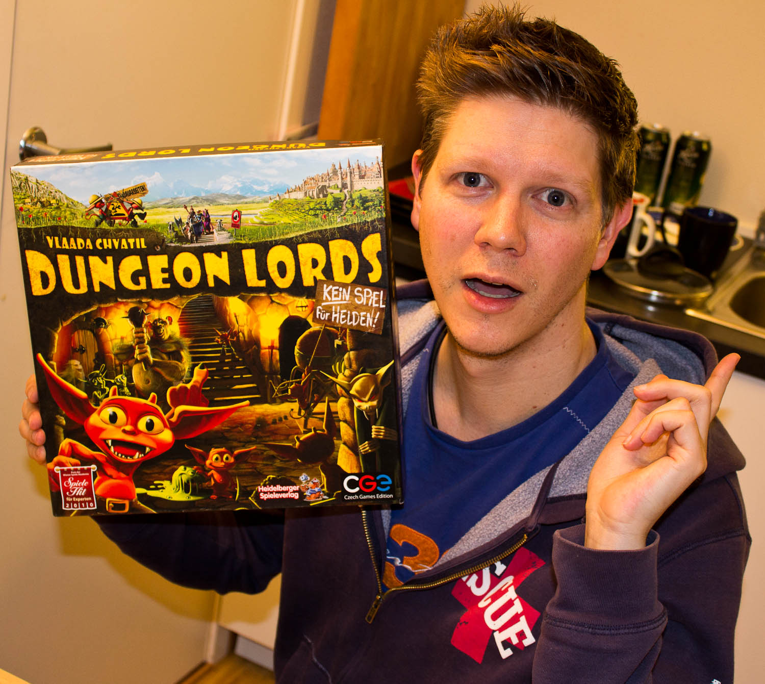 Da var det klart for Dungeon Lords! Skillz hadde allerede blitt fortalt om dette av Takras og han var meget klar for å spille et kompleks spill med tema som tatt fra Dungeon Keeper for de som husker det PC-spillet. Dette er en fin blanding av skjulte ordre, worker placement, utbygging av «riket» sitt og kamp mot monstre helter. Alt etter øyet som ser. Med to spillere er det noen spesielle regler for hvordan de to nøytrale spillerne fungerer, og disse reglene fungerte ganske godt. Hver spiller har én liten ting de kan bestemme mtp ordre, og løsningen ble brukt omtrent hver eneste runde til hver spillers gode. Hva skjer? Du er en mørk fyrste som skal lage den beste undergrunnsboligen for dine slemme monstre og for gullgraving. Men hvert år så kommer det slemme helter som tar seg fritt inn i det du har strevd lenge med å bygge opp, og bare rasere alt du har jobbet for! De kommer bare om sommeren, så i mellomtida må du gjøre det beste du kan for å forberede deg mot neste sommer, og samtidig konkurrere mot de andre fyrstene. Men, om du blir for ond, så kommer den slemme gode paladinen og gjør det skikkelig surt for deg.