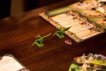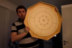 Først ute var Crokinole, det berømte/beryktede spillet der man knipser brikker mot et midtpunkt. Berømt fordi det er et flott spill med enkle regler og utfordrende dynamikk, men beryktet fordi neglene gjerne føles blå etterpå. Regler ble kjapt forklart, og Skillz fikk noen testskudd. Takras sikret seg 75 poeng første runde, og Skillz innså det måtte gjøres noe. Han fikk inn et par runder med få poeng, men måtte si seg tapt. Ny runde, annerledes utfall. Men i siste runde klarte ikke Skillz å komme forbi pinnene og ga fra seg haugevis med poeng på den måten. På tide med pause før fingrene går fra rosa til blå.